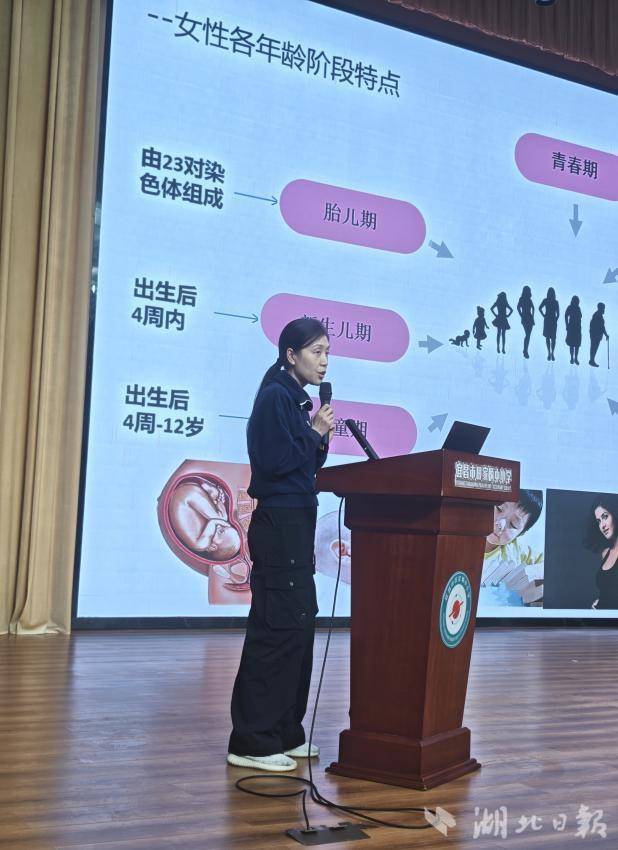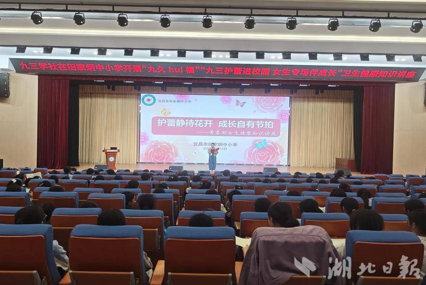 湖北日报讯(通讯员 赵筑阳)为了助力学校营造积极健康校园氛围,引导女生正确认识青春期身心变化,4月16日,九三学社伍家岗支社在田家炳中小学学术报告厅向五年级全体女生开展了一场主题为“九三护蕾进校园 女生专场伴成长”青春期女生卫生健康知识专题讲座。九三学社积极分子、宜昌市中心人民医院副主任医师胡兴艳担任主讲,支社主委蒋文兵、副主委吕志阳等参加活动。