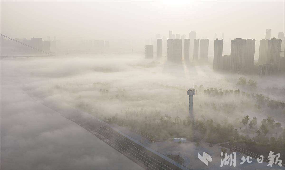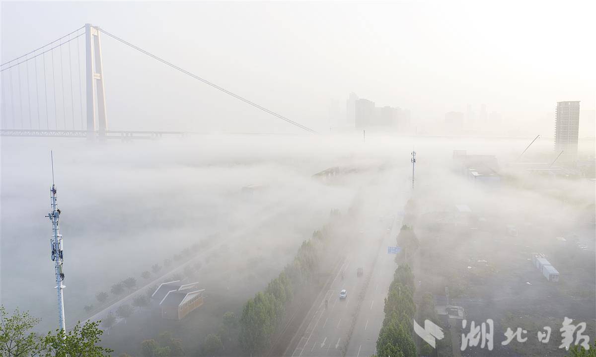 武汉市气象台2026年4月17日3时2分发布大雾橙色预警信号:预计今天凌晨至上午,长江新区大部街道将出现能见度小于200米,局地小于50米的雾,请加强防范。(湖北日报全媒记者 朱熙勇 摄)