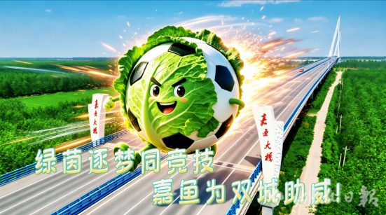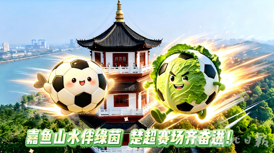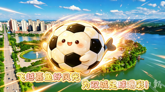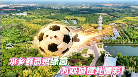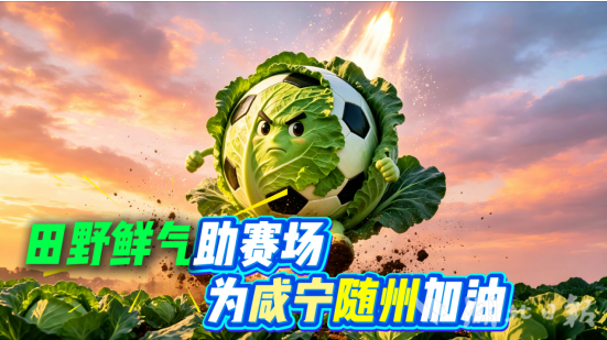 以AI创意打造的嘉鱼甘蓝、嘉鱼鱼圆等嘉鱼特色元素,飞越三湖连江、二乔故里、岳公楼等嘉鱼标志性景点,将嘉鱼田园活力与水乡灵气带到赛场,为咸宁、随州两支球队加油喝彩,让文旅魅力与体育精神同频共振。