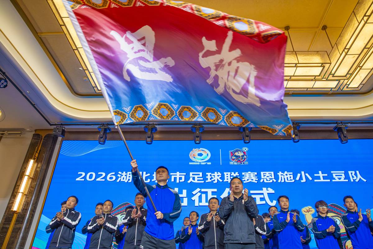 “恩施加油,恩施要得,恩施必胜!”4月17日上午,2026年湖北省城市足球联赛(恩施赛区)恩施小土豆队举行出征仪式,50名参赛球员悉数亮相,带着全州近400万人口的期待,将于18日与荆门金龙泉队进行首场对决。