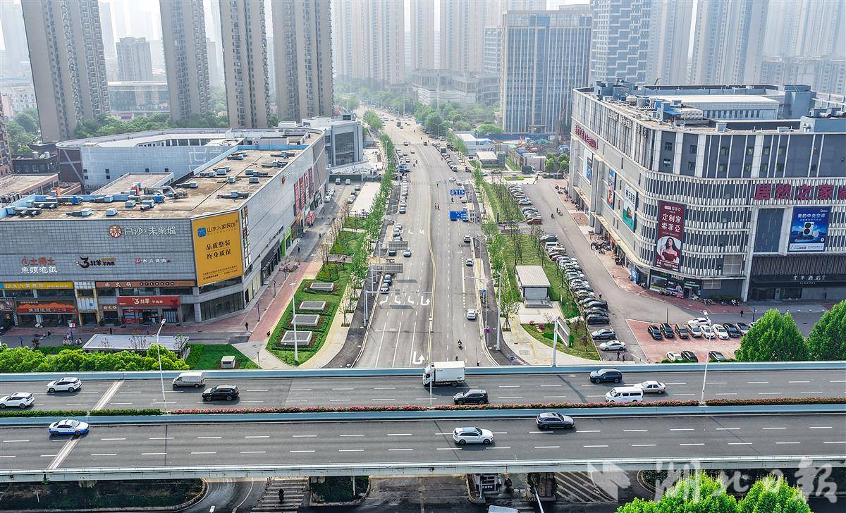 4月17日上午,鸟瞰近期全线通车的白沙三路。