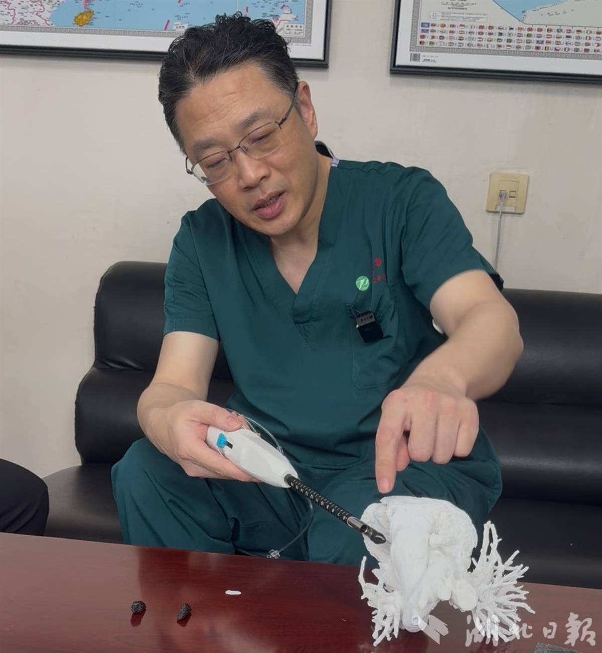 魏翔讲解心肌旋切刀工作原理。(湖北日报全媒记者 张华 摄)