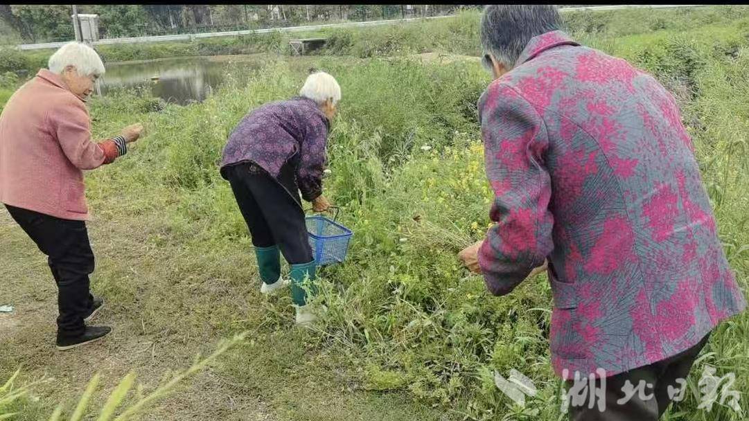 老人来到田间地头挖荠菜。(通讯员石远红提供)