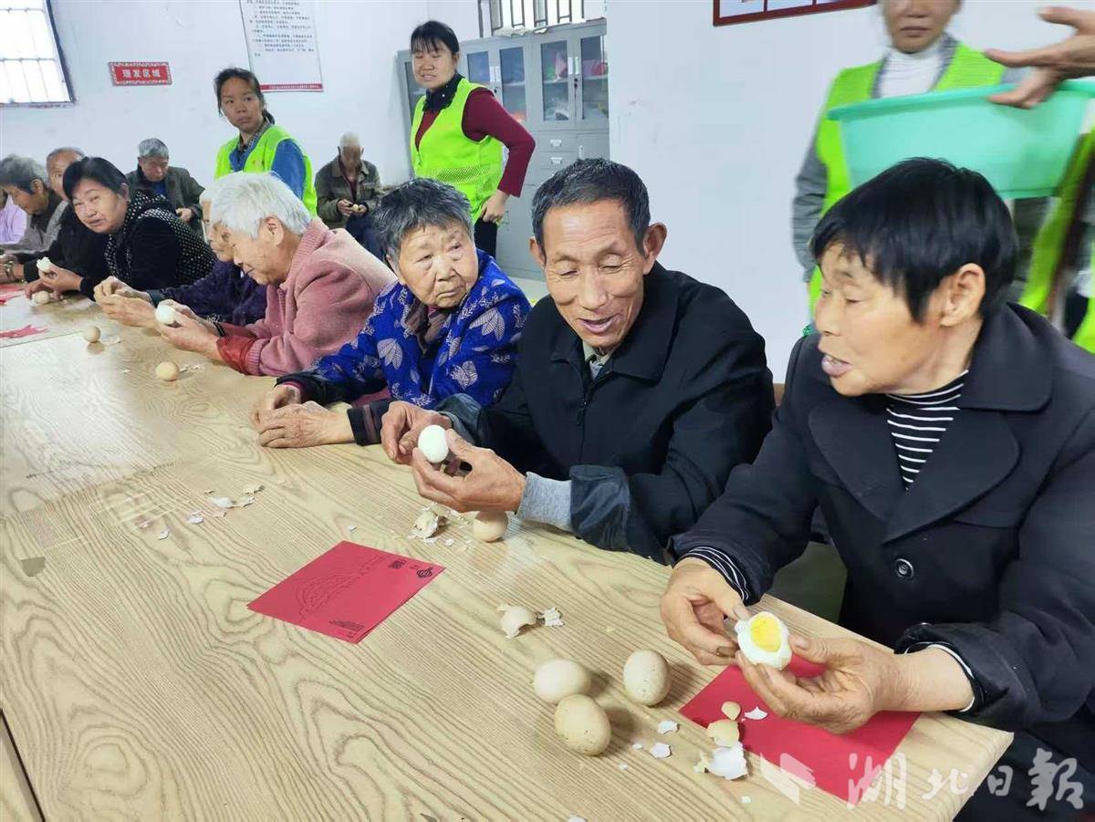 老人们在吃鸡蛋。(通讯员石远红提供)