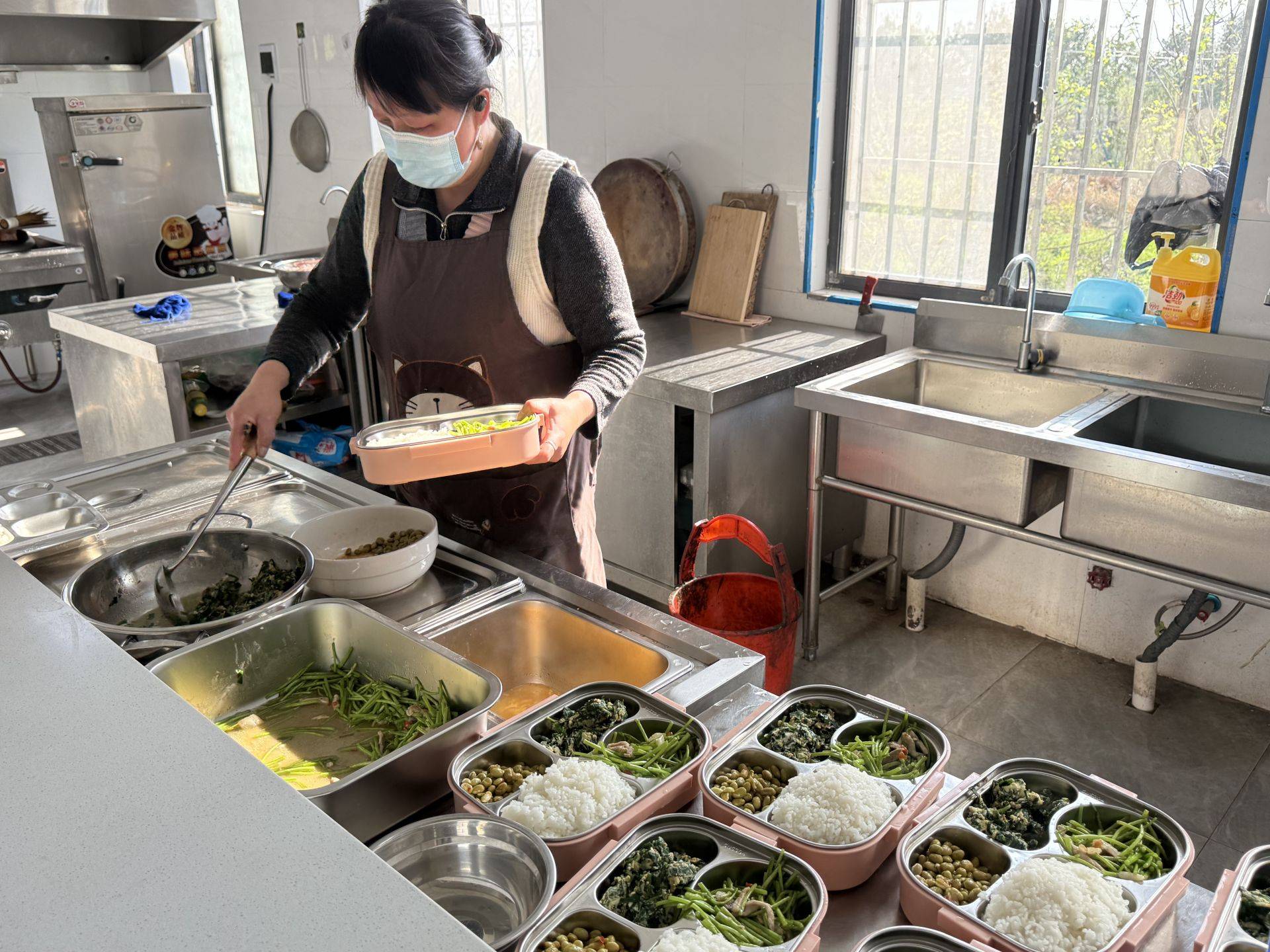 幸福食堂的工作人员正在为老人打包饭菜。黄菲 摄