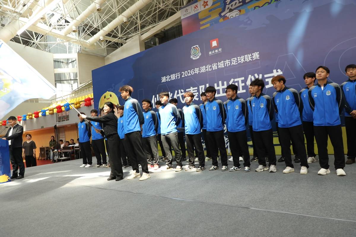 2026年湖北省城市足球联赛(简称“楚超”)仙桃黄鳝队出征仪式,在这里燃情举行。身着蓝色战袍的勇士们列阵如铁,在近百名家乡球迷的灼热目光中,接过出征大旗,吼出“为仙桃荣誉而战”的誓言,正式踏上楚超征程!