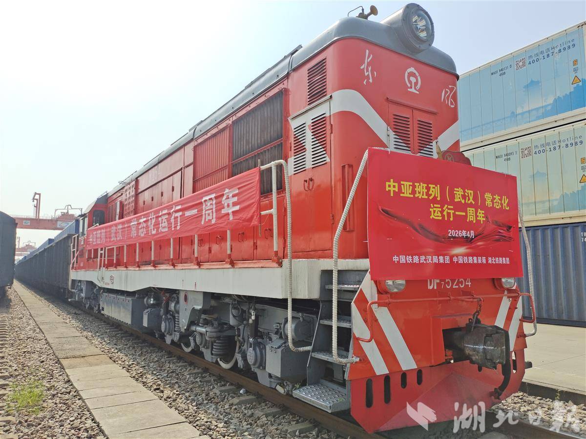 湖北日报讯(记者胡祎、通讯员芦忠章、李莎)4月18日,满载汽车零部件、电子产品和日用百货的X9011次中亚班列从武汉吴家山铁路中心站驶出,奔向乌兹别克斯坦。这一天,恰逢中亚班列(武汉)常态化稳健运行一周年。