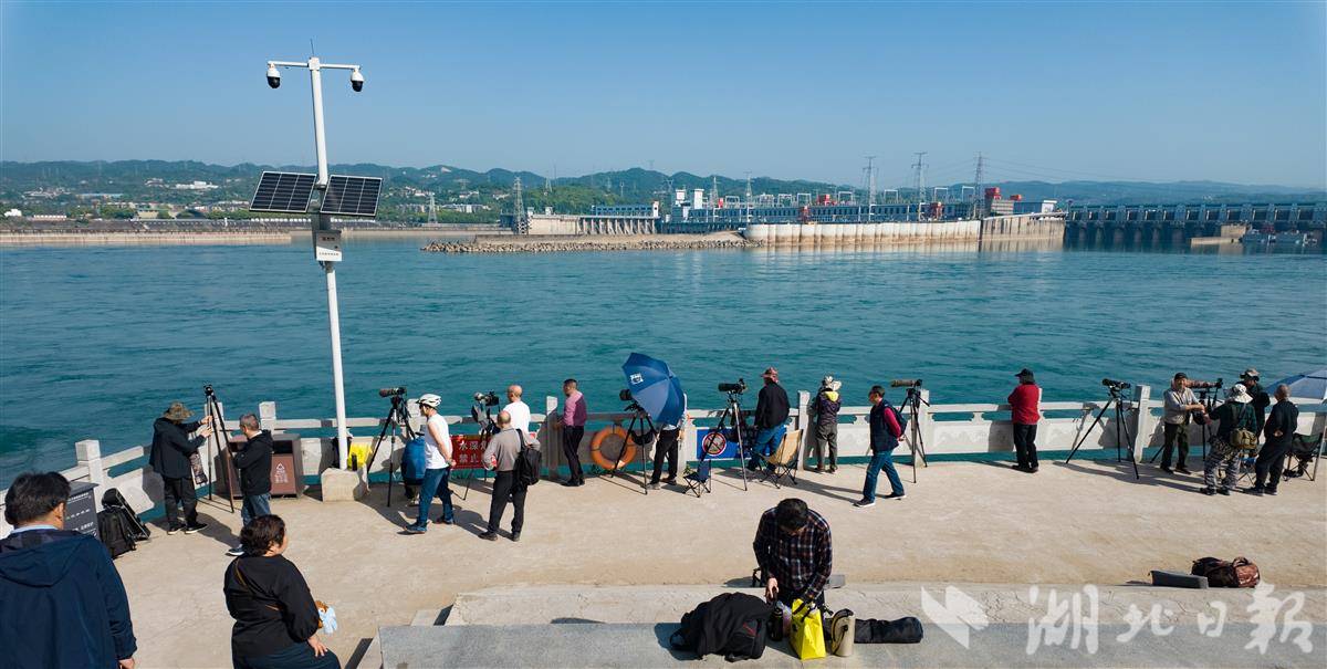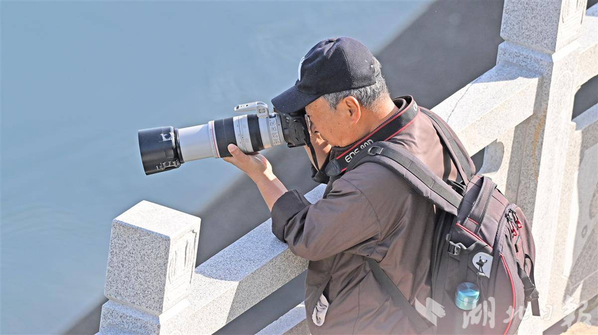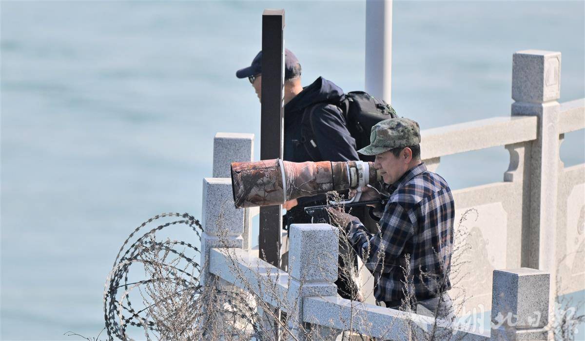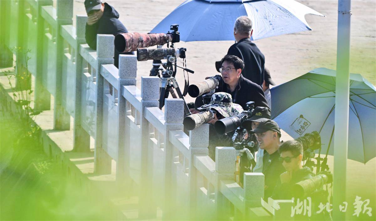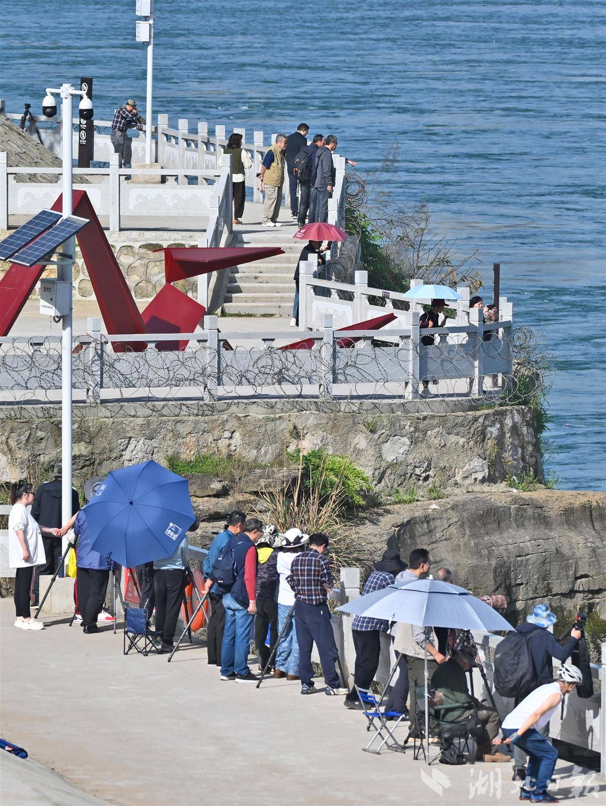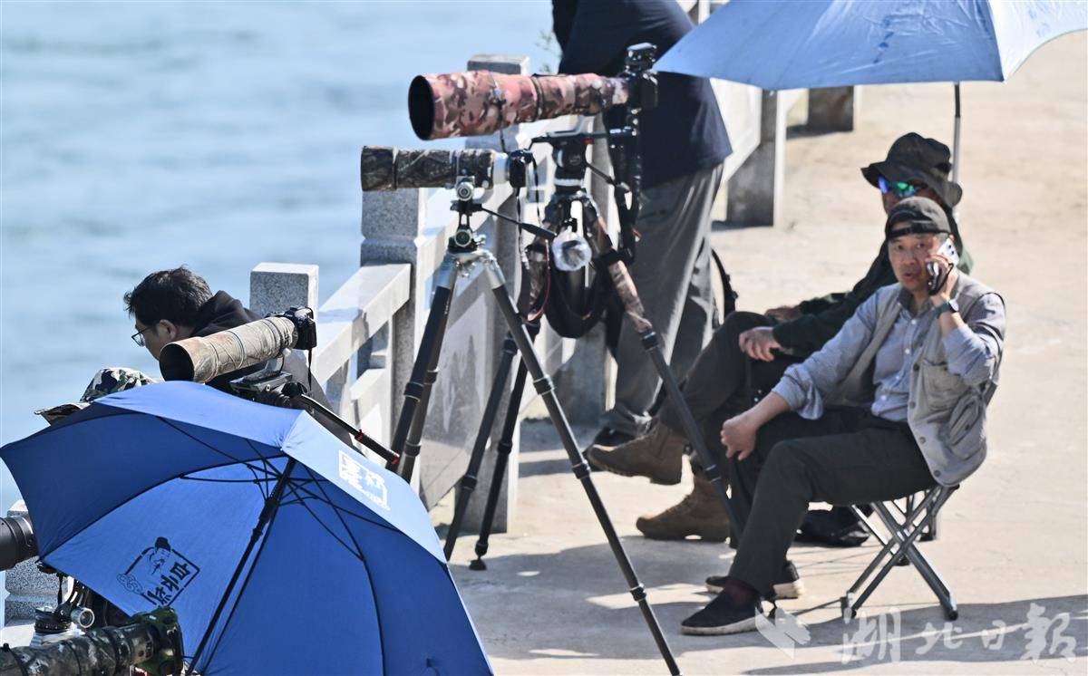 4月18日,宜昌长江西坝大江游步道旁,“长枪短炮”整齐列队,来自武汉、长沙等地的摄影爱好者们凝神静候、屏气凝神,目光紧紧锁定江面,只为邂逅“微笑天使”江豚,定格它们跃出水面、逐浪嬉戏的灵动瞬间,每一份期待都藏在镜头的坚守里。