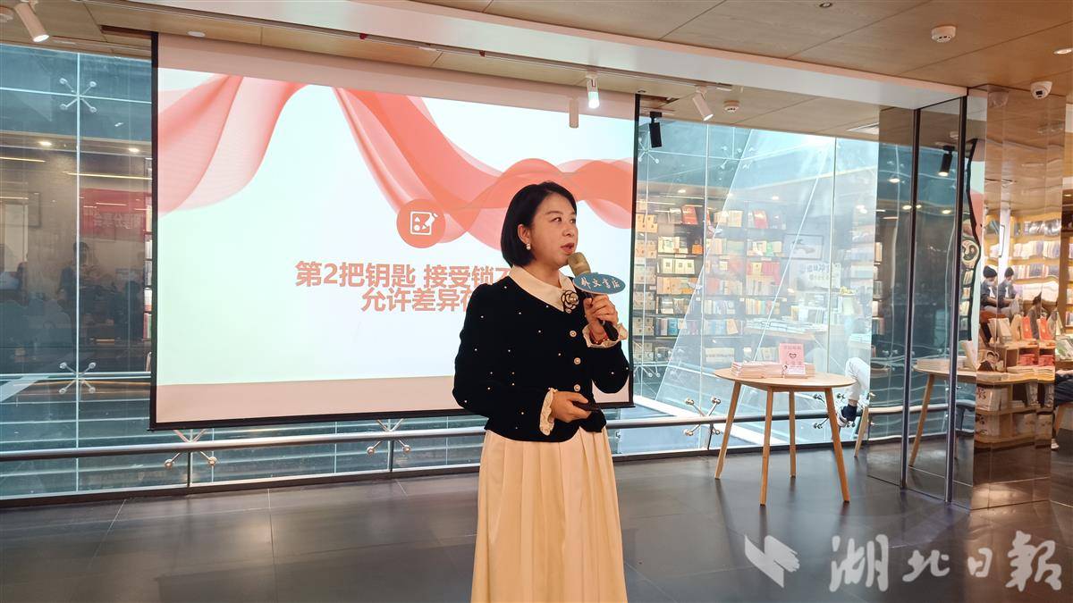 湖北日报讯(记者韩晓玲、通讯员李诗苑)4月18日下午,一场婚姻心理主题分享活动在湖北省外文书店举行。国家一级婚姻家庭咨询师、畅销书《幸福婚姻七堂课》作者羽仟来到现场,以“破解亲密关系的终极密码:七把钥匙,打开幸福之门”为题,与读者、青年群体及心理学爱好者面对面交流。她告诉大家:“没有天生完美的婚姻,幸福只需要找对密码。”