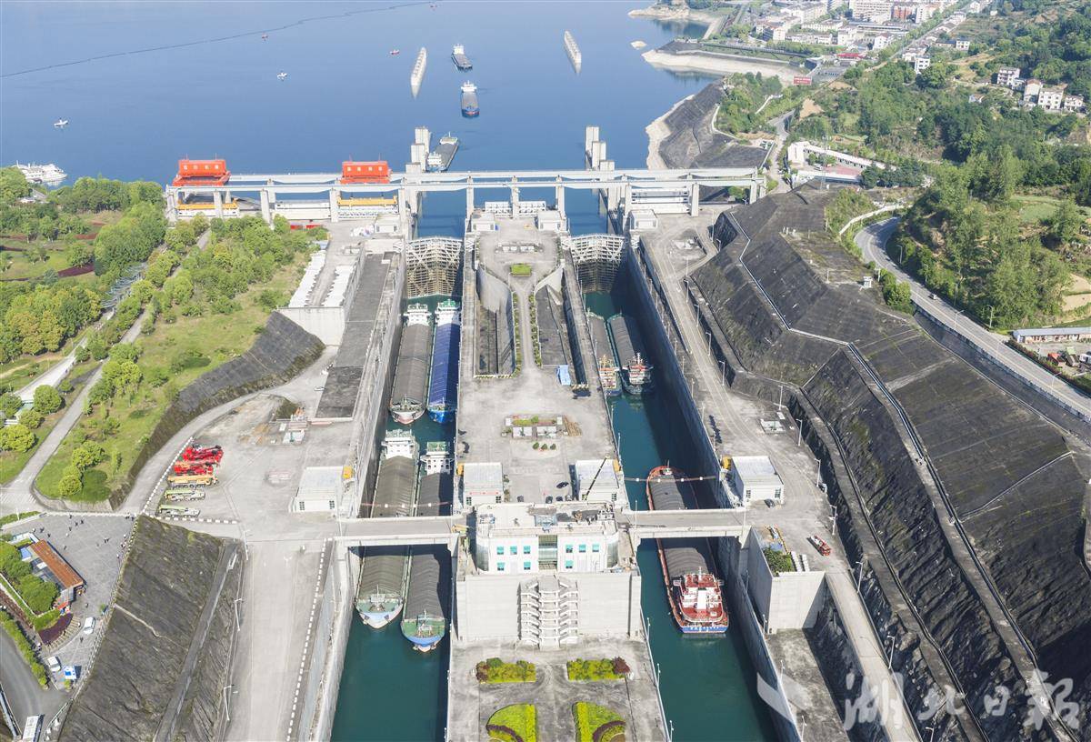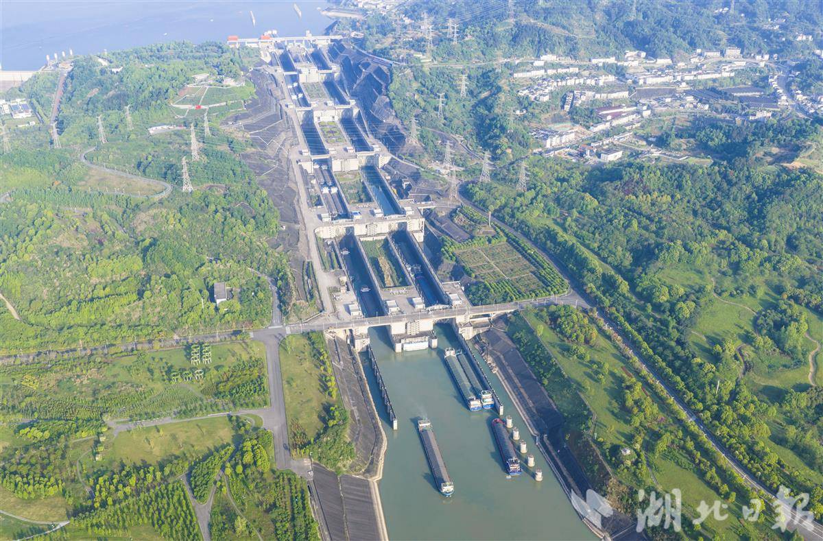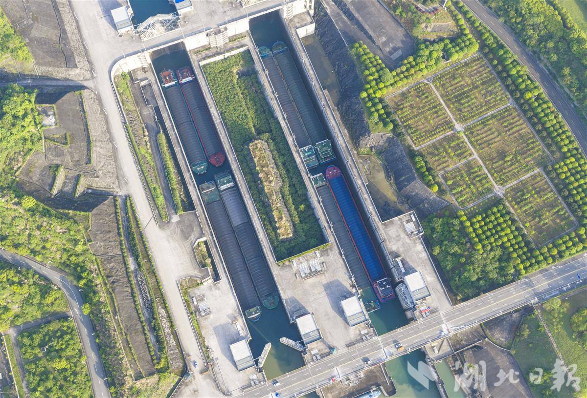 4月18日,船舶有序通过三峡双线五级船闸。