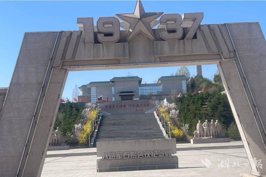 走进八路军石拐会议纪念园,120级石阶缓缓向上延伸,尽头处,19.45米高的纪念碑巍然矗立,数字寓意着1945年抗战胜利的伟大时刻,碑身镌刻的大字苍劲厚重,在春日暖阳下愈显庄严。这座集纪念碑、纪念馆、会议旧址、纪念广场于一体的红色阵地,是省级爱国主义教育基地,每年都有无数人慕名而来,重温那段烽火燃情的革命岁月。站在纪念碑前,我与杜爱忠战友深深敬拜,心中满是对革命先辈的崇敬与缅怀。
