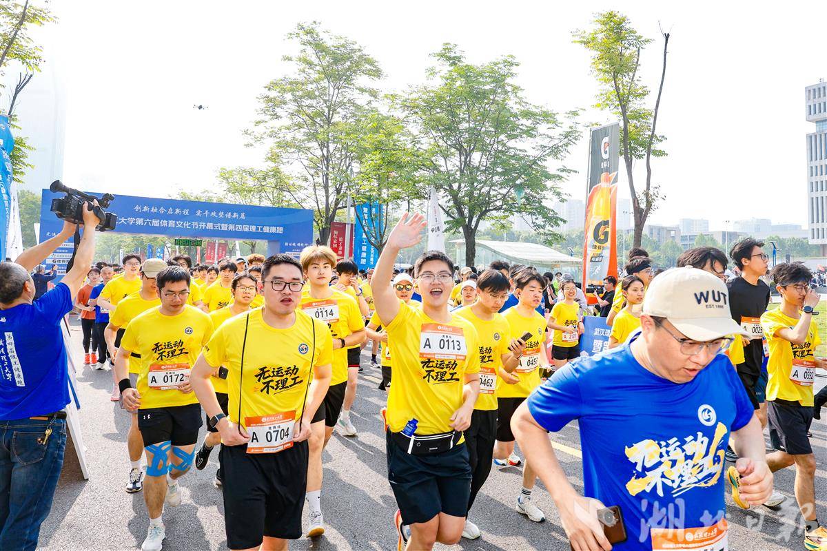 湖北日报讯(记者文俊、通讯员谢小琴、于鸿贤)“我是02级校友,来自北京。”“我是学生家长、来自黄冈。”4月18日,武汉理工大学第六届体育文化节开幕式暨第四届理工健康跑在南湖校区博学广场举行。万余名学校师生、校友及学生家长代表积极响应“健康第一”的时代号召,共同奔赴这场健康之约,在奔跑中强体魄、铸精神,传承“无运动、不理工”校园体育精神。