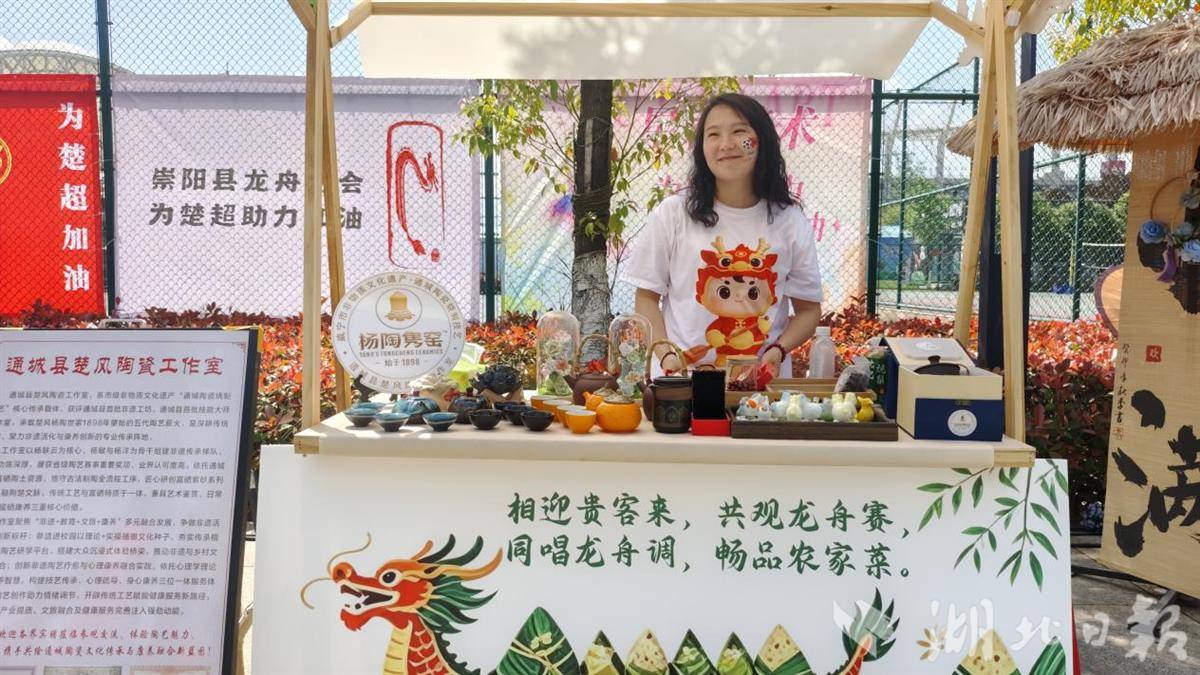 赛场外,开赛前,通山木雕、通城陶瓷、赤壁马氏铜艺、咸安铜雕、崇阳字门矮桩拳、赤壁赵李桥砖茶等6项咸宁非遗项目同时布展,传承人纷纷亮出绝活,用最地道的“文化助威”为赛事暖场。