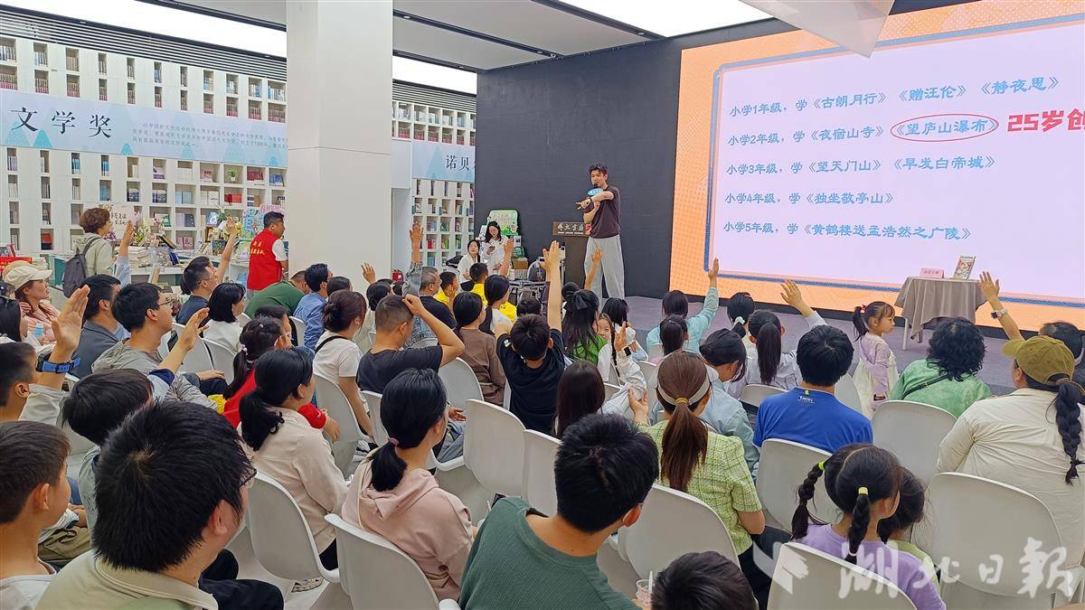 现场小读者们听得兴致勃勃,被萌趣的动物形象和精彩的诗词故事吸引,纷纷举手抢答、背诵诗词。一位家长表示,这种“漫画+诗词”的学习形式活泼有趣,能有效激发孩子对古诗词的兴趣,从而实现快乐学习。