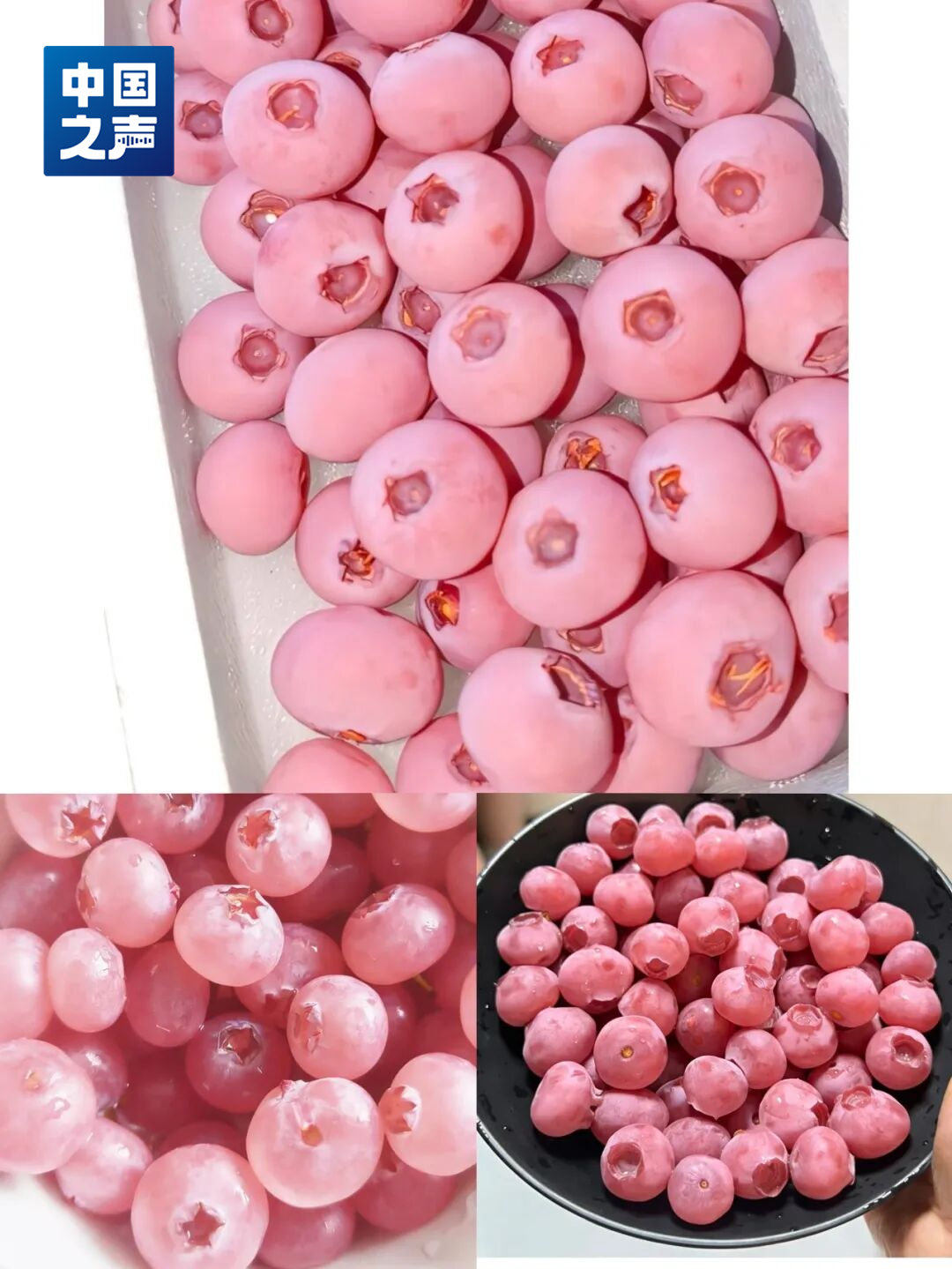 和加卫表示,粉色蓝莓通常粉中带紫,果柄部位多为白色或青色,并不会出现全粉、全红的状态。而徐国辉提供给总台记者的图片显示,“粉黛”蓝莓呈紫红色。