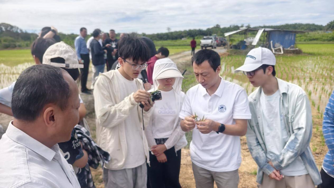 实践队还来到马来西亚旺马农业公司的水稻试验田与加工厂,他们留意到,由于当地土质松软,大型机械难以作业,部分试验田块土地平整度欠佳,即便已进行灌溉,仍有不少稻苗扎根在布满龟裂纹路的干涸土壤里。队员们向武汉国英种业首席科学家龚德军等专家积极请教,将田间的所见所闻、心中的所疑所惑一一详实记录。这趟田间行,让“种子出海”从抽象概念变为具象画面,让大家明白了每一项技术推广都需要克服实际的生产条件限制。
