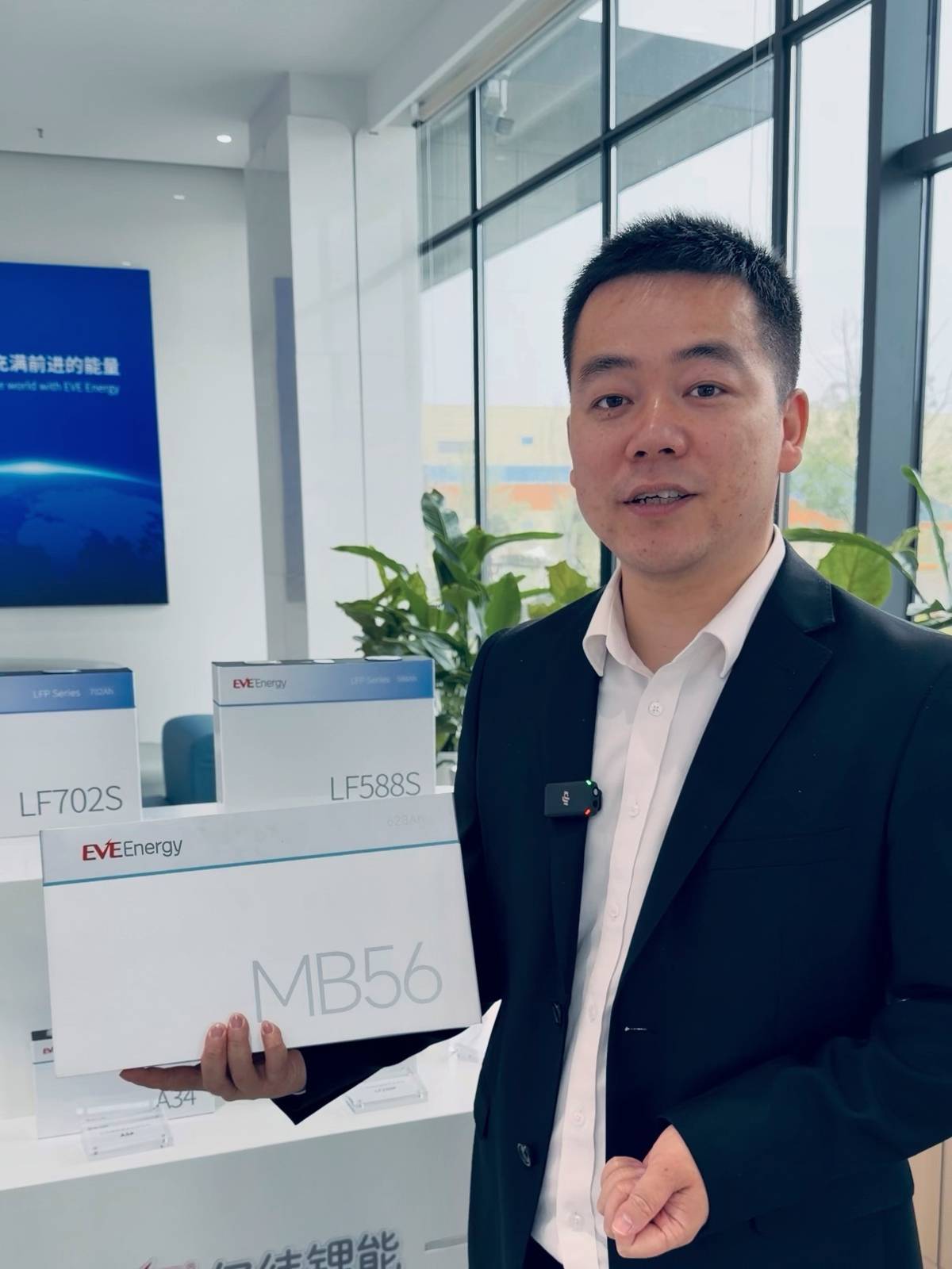 亿纬动力研究院储能电池研究所所长程呈向记者介绍628安时储能电池。(记者 张诗秋 摄)