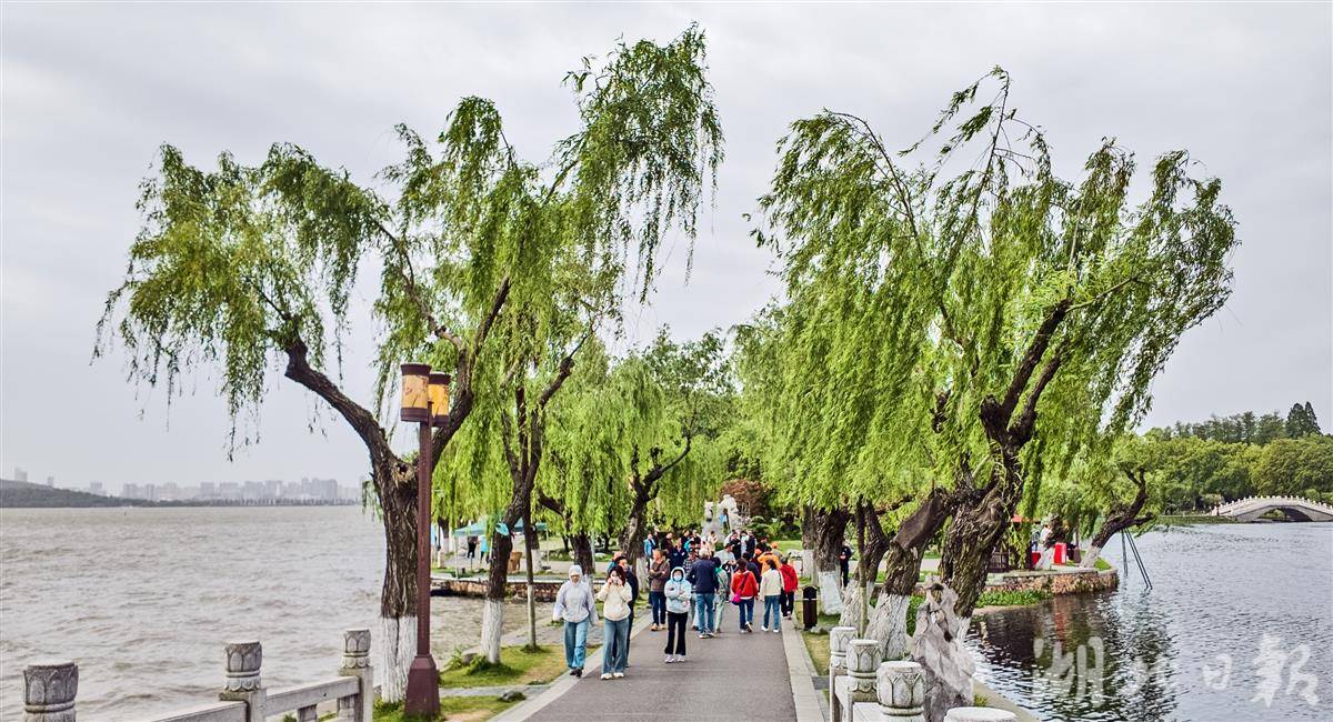 4月20日,受冷空气南下影响,武汉出现明显大风降温天气,武汉市气象台发布大风蓝色预警信号,东湖区域阵风可达6至8级。尽管风势较大,但春日暖意未消,东湖景区游人依旧络绎不绝,市民游客在风中赏柳观景,尽享春日烂漫。当日,记者在东湖景区看到,尽管风势不小,但并未阻挡市民游客的踏青热情。景区内游人络绎不绝,大家或漫步绿道,感受春风拂面;或临水驻足,欣赏柳浪翻涌的美景,不少游客还拿出手机记录下大风中的东湖风光,休闲惬意。(湖北日报全媒记者 刘曙松 摄)