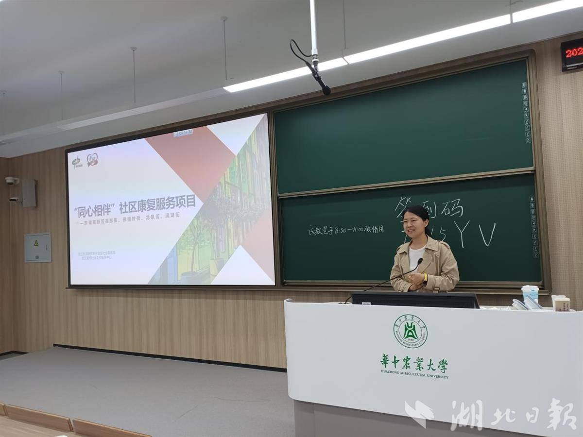 湖北日报讯(记者方琳、通讯员陈清靖翎)4月16日上午,华中农业大学园艺林学学院的一间教室里,气氛格外热烈。一场关于“如何用心陪伴精神康复对象”的志愿服务分享会在这里举行,讲台上是武汉爱熙社会工作服务中心的社工,这是他们为张瑜服务队的大学生志愿者带来的“岗前充电”。