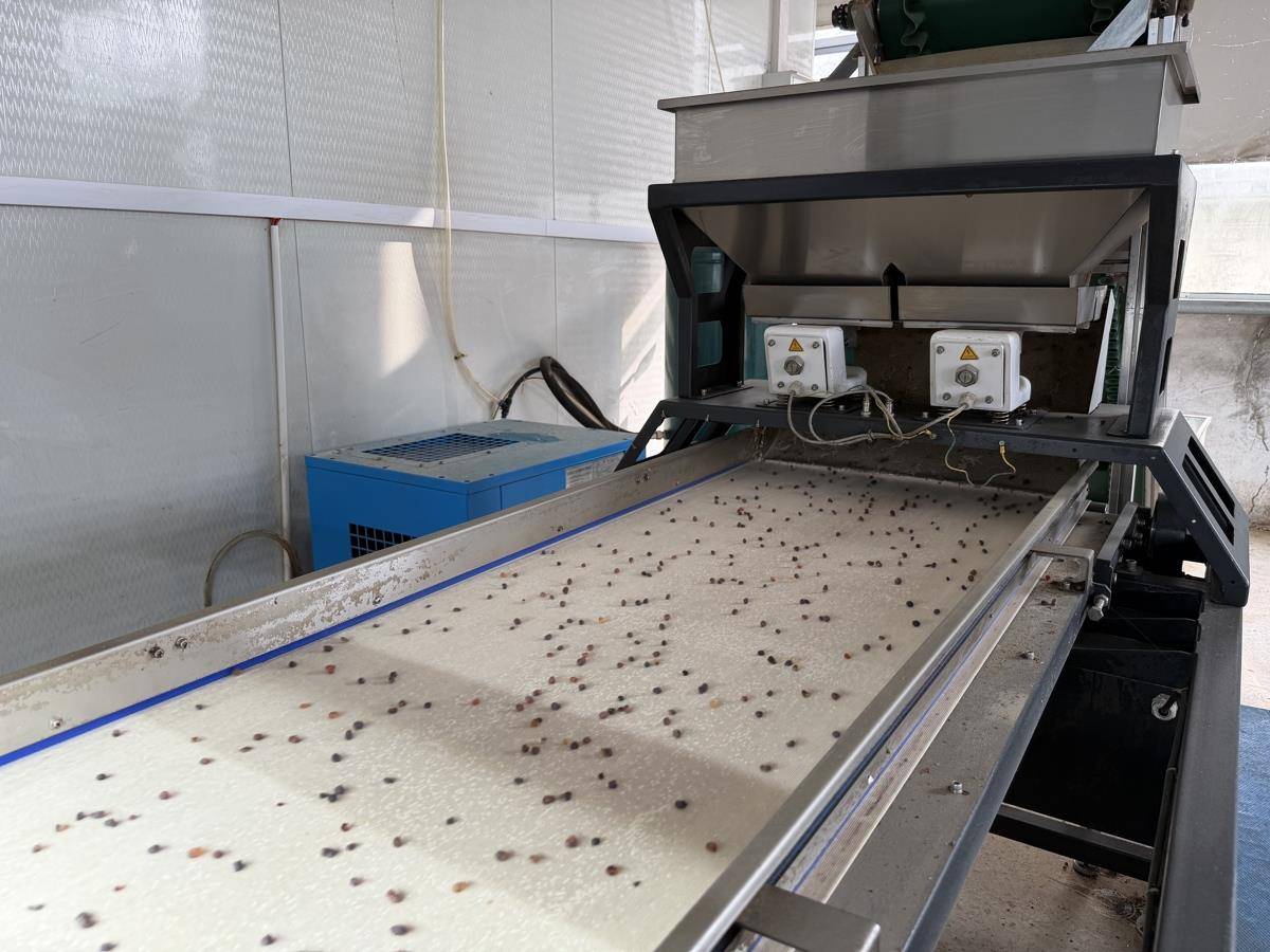 随州市曾都区府河镇,湖北钰峤农业科技有限公司的桃胶加工车间,收储的桃胶在色选机的传送带上疾驰而过;分拣车间里,工作人员小心剔除桃胶上的枝干纤维、碎屑等杂质并分级。