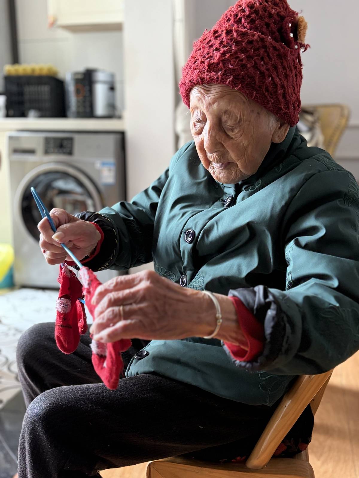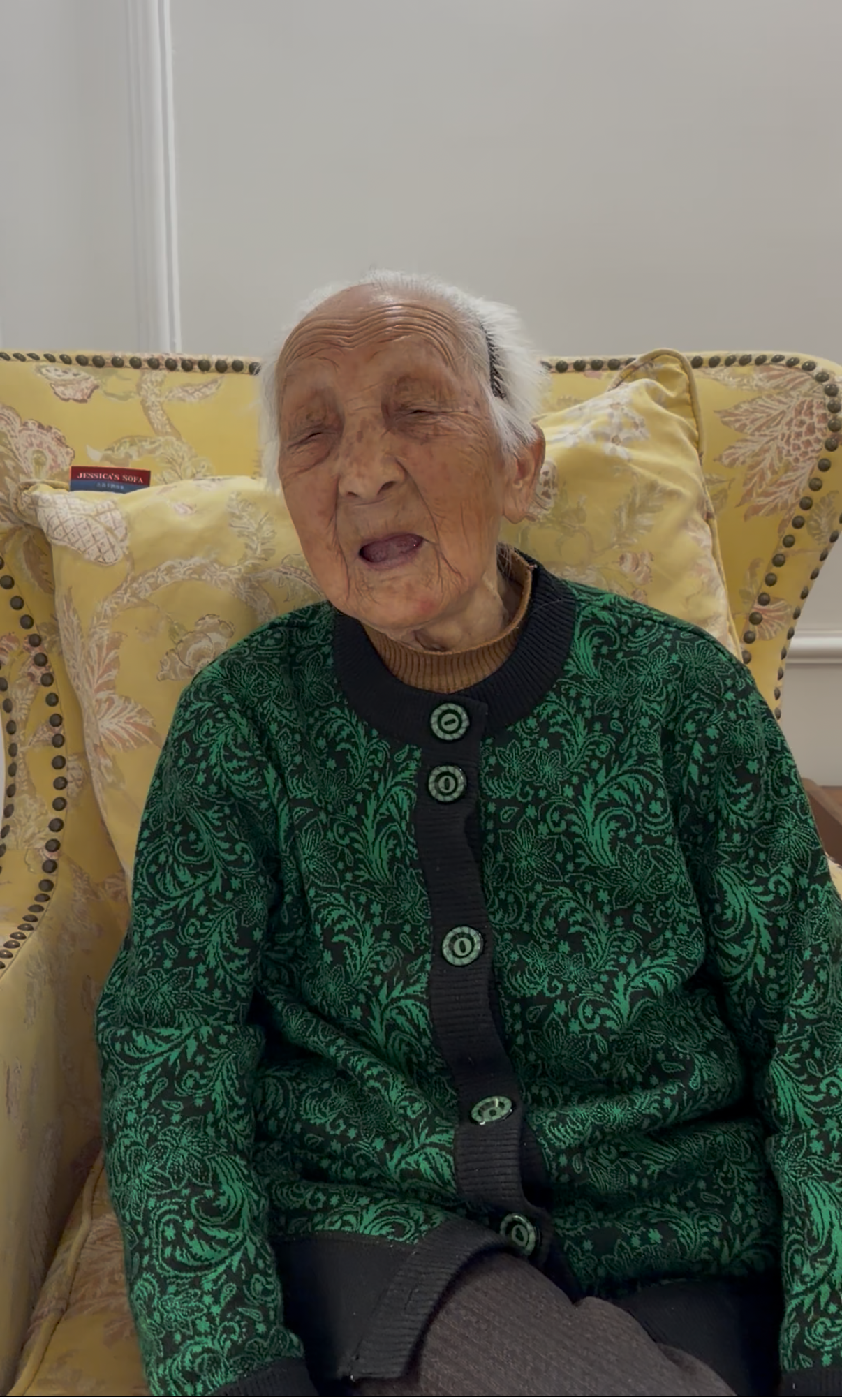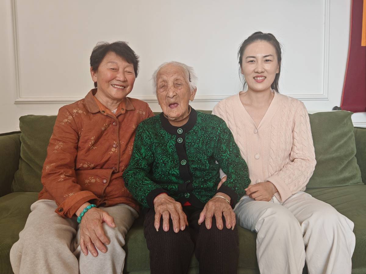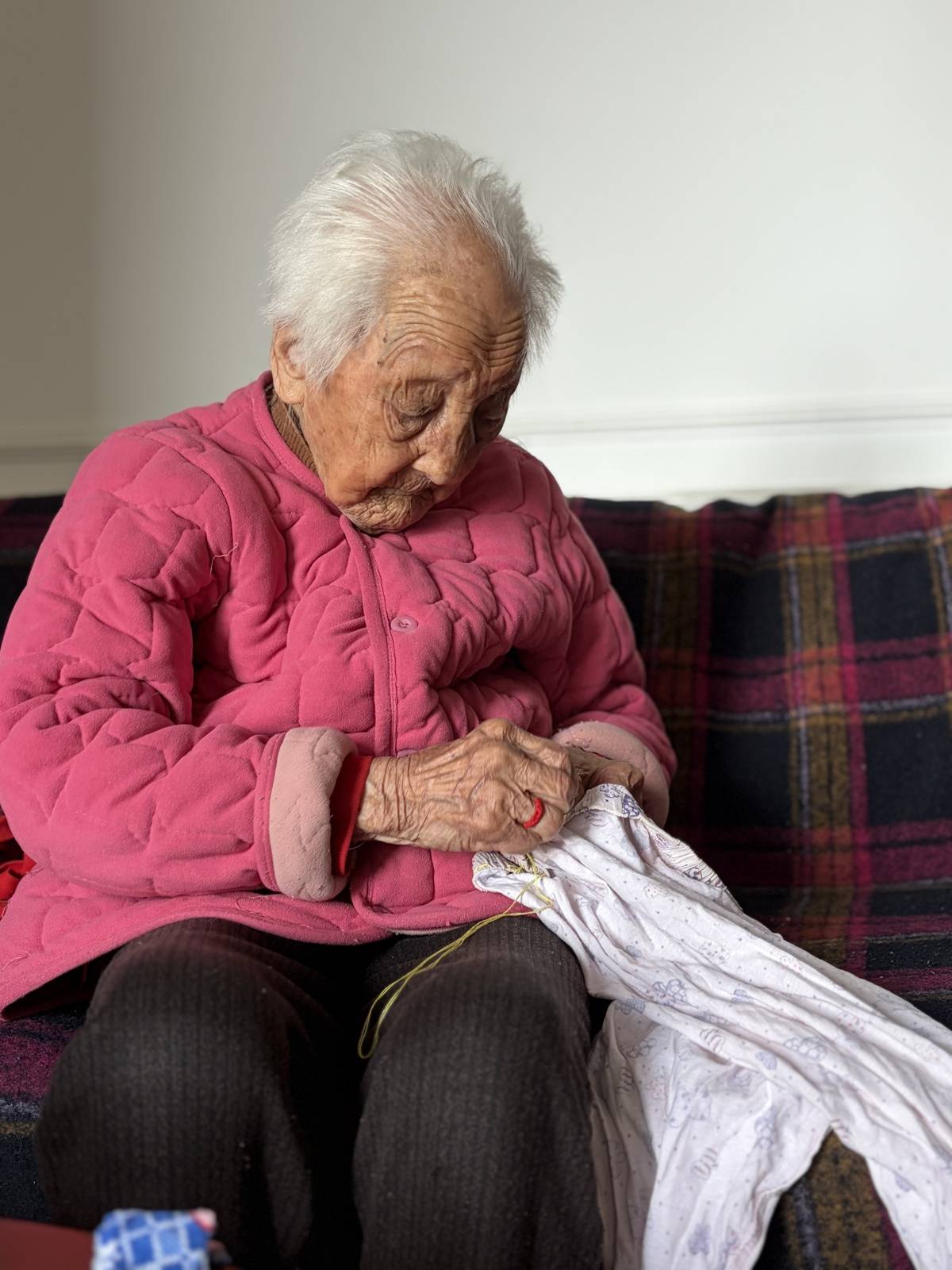 刚过完104岁生日的张明青老人,端坐在靠窗的沙发上兴致高歌,孙女卫明在一旁不住点赞、拍照,温馨的场景在春日里格外动人。