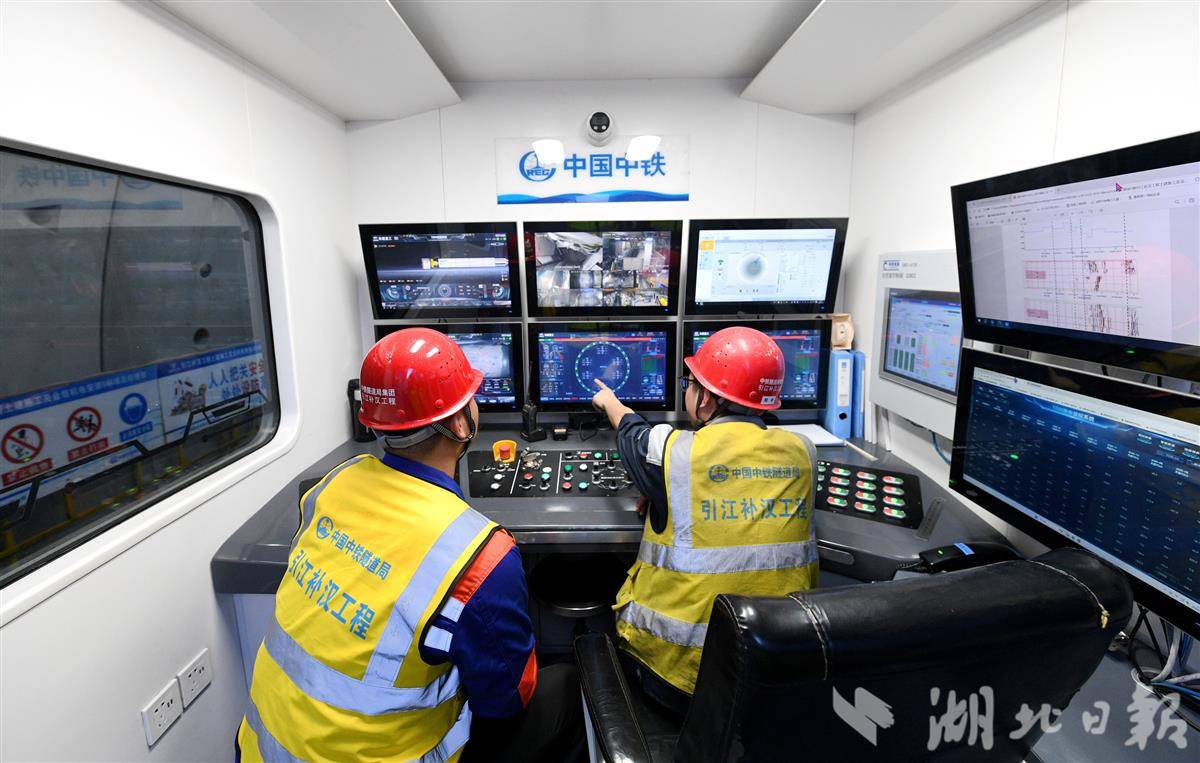 工人在中控室操作“江汉云梦号”TBM掘进作业。