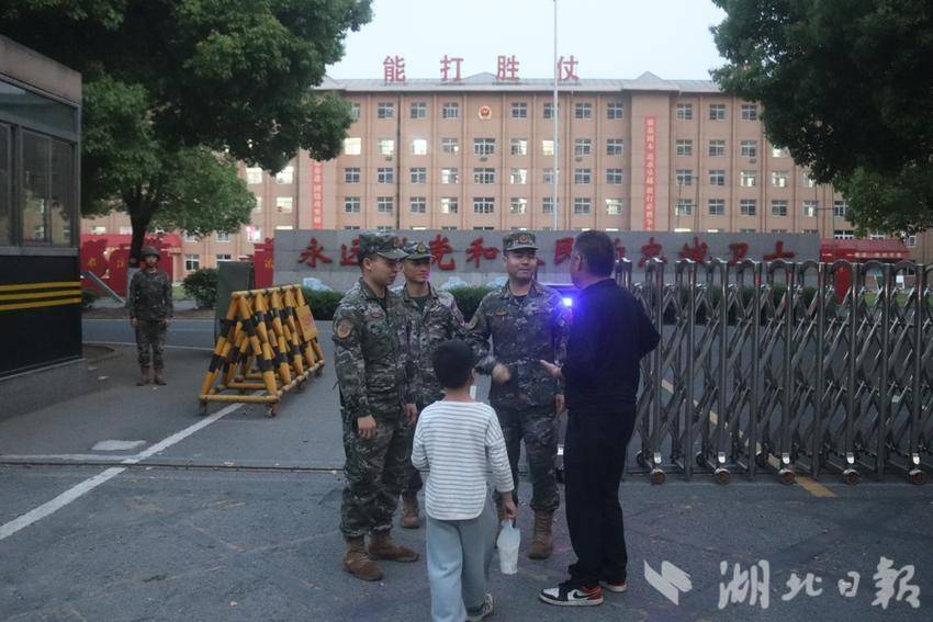 一位女士带着一名六七岁模样的小男孩,匆匆走到武警湖北总队机动支队某部门岗前。男孩神色焦急,眼圈微红,哽咽地重复着什么。哨兵见状,立即上前询问。