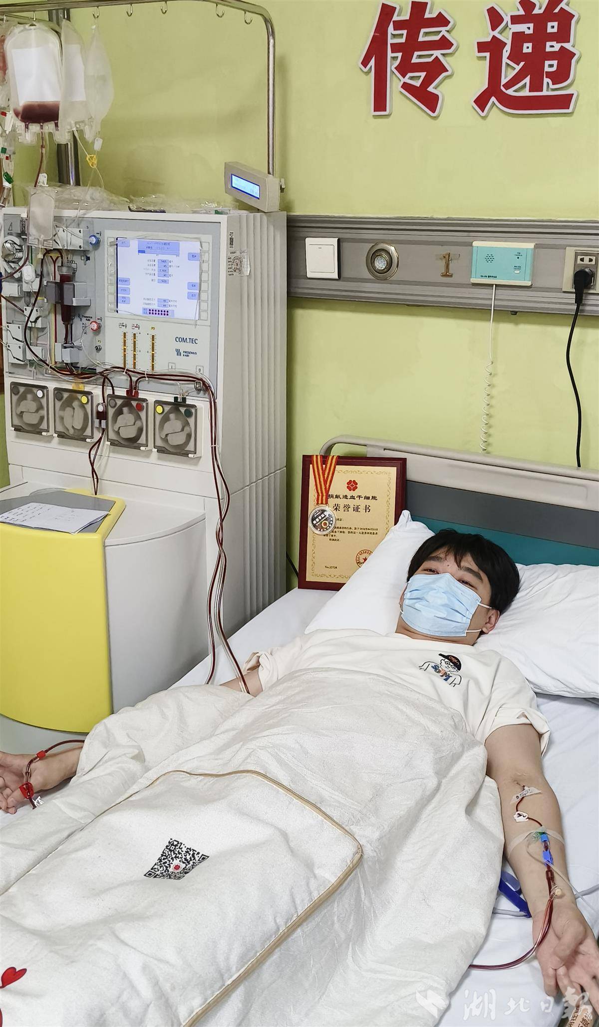 湖北日报讯(记者曾莉、通讯员章晟)4月21日,在湖北某定点采集医院的采集室里,24岁的退伍军人小代(化名)躺在采集床上,看着血细胞分离机缓缓运转,造血干细胞慢慢汇聚到采集袋中。这份满载希望的“生命种子”,将被紧急送往华中地区某医院,去拯救一名年仅8岁的血液病患儿。