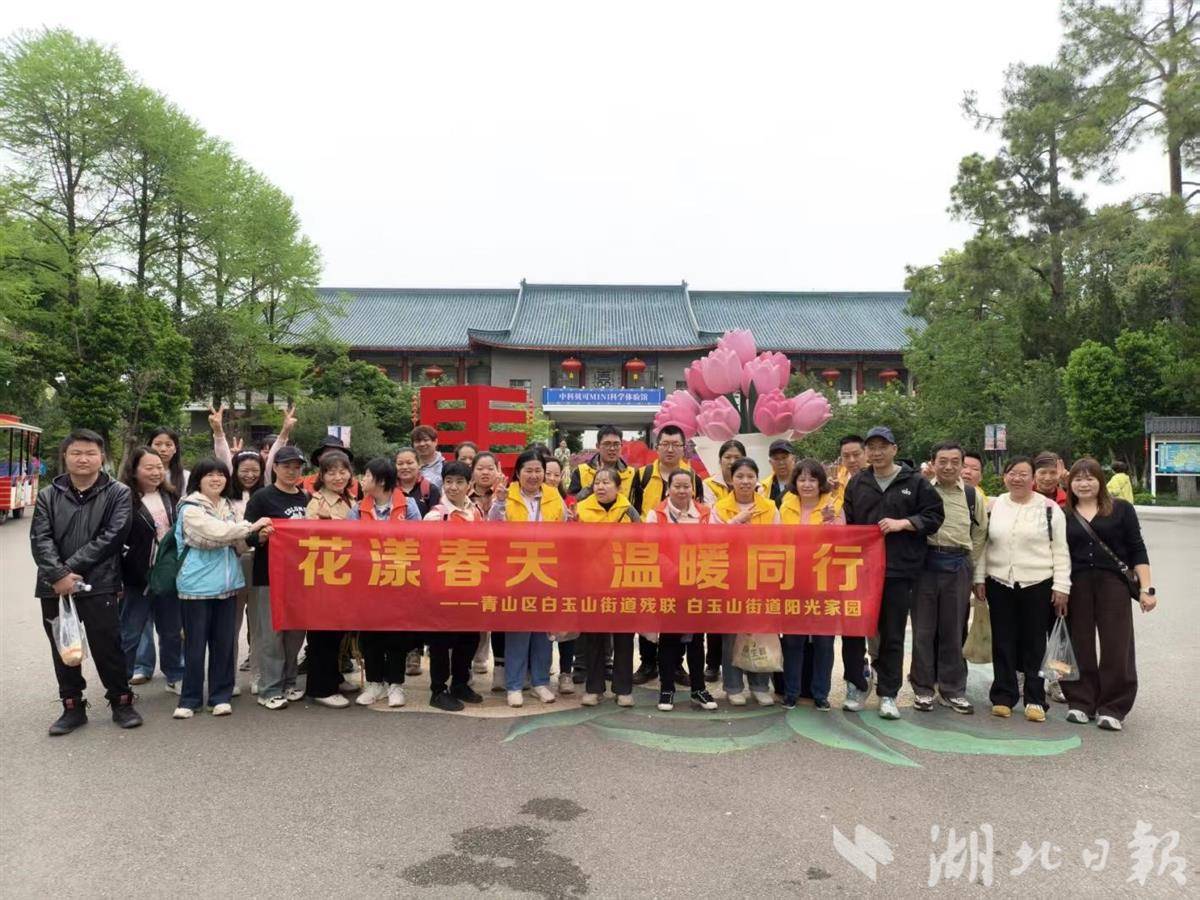 湖北日报讯(记者方琳、通讯员褚娟娟)日前,武汉市青山区白玉山街阳光家园联合社工站开展“花漾春天,温暖同行”主题春游活动。在工作人员、志愿者及家属的“一对一”陪护下,35名残疾人学员走进中国科学院武汉植物园,拥抱自然,感受春日的美好与社会的温暖。