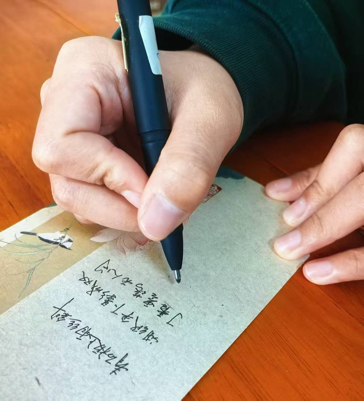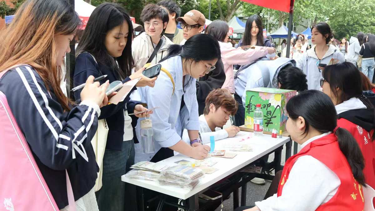 湖北日报讯(记者张歆、通讯员陆慧)“世界是一本摊开的书/ 我在字里行间行走/寻找属于自己的注脚”“风把书页吹向十七岁/我们在光里站成句子/少年心事,不必落款”……近日,武汉商贸职业学院第十二届读书节游园会上,一面贴满素白信笺的展板成为学子们的“热门打卡点”,学生们纷纷提笔即兴创作诗句,抒怀寄情。