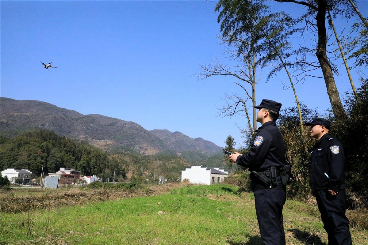 通山县公安局利用警用无人机进行拉网式高空排查。