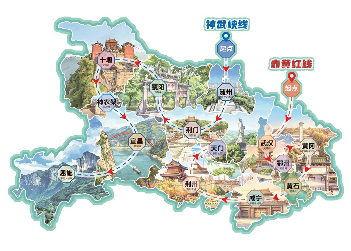 游戏互动区创新设计“神武峡”“赤黄红”两条文旅闯关路线,将全省17市州的历史人文知识转化为“知识格”,用文旅闯关路线串联形成“志行荆楚”地图。读者抽取不同难度的题目,在答题中体验文旅路线、了解方志知识,用脑力熟悉湖北、用脚步“志行”荆楚。闯关题目按难度分层设置,鼓励读者组队参与,既彰显了荆楚文化特色,也增强了挑战性与互动体验。