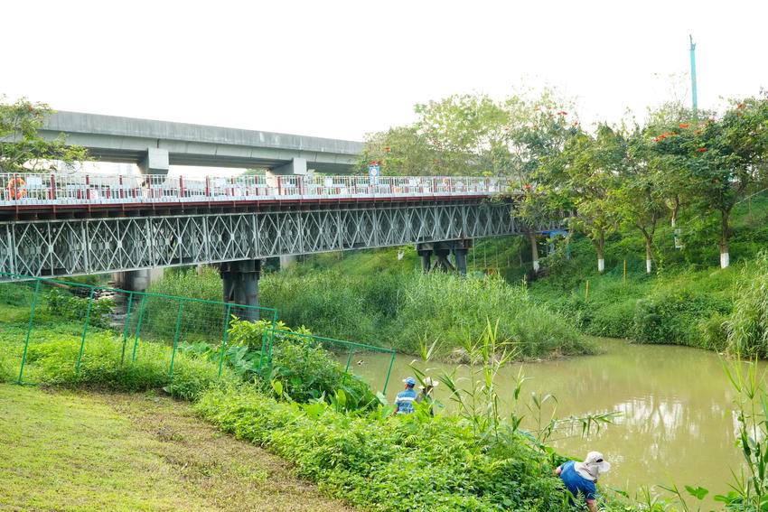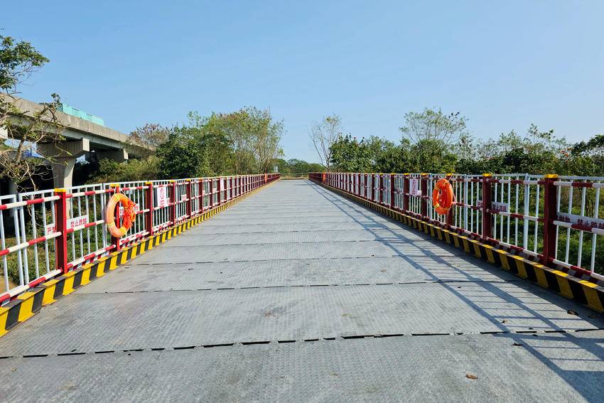 南岗河作为广东省唯一入选水利部首批“幸福河湖”建设项目的河流,生态环保要求极高。为此,项目建设团队始终坚持生态优先,严格遵循环保施工规范,最大限度减少对水环境的影响。同时,桥梁配套完善安全防护设施,设置限速限载标识、防护栏杆、救生圈等,全面筑牢施工安全防线,为后续提梁站建设及主体施工打通关键脉络。