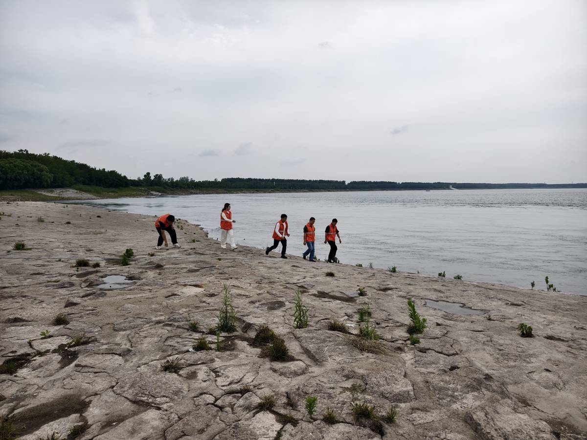 荆州市长江河道管理局岸线管理员在长江荆州段巡查岸线,为即将到来的汛期排除安全隐患。(胡锦桥摄)