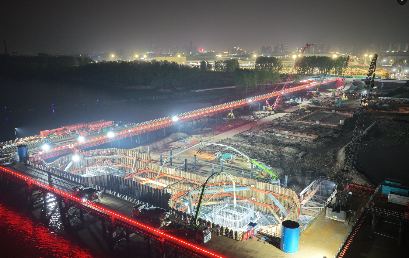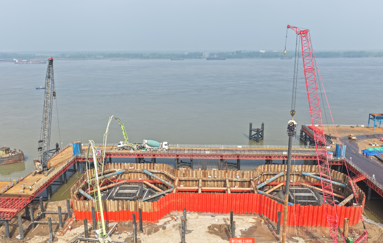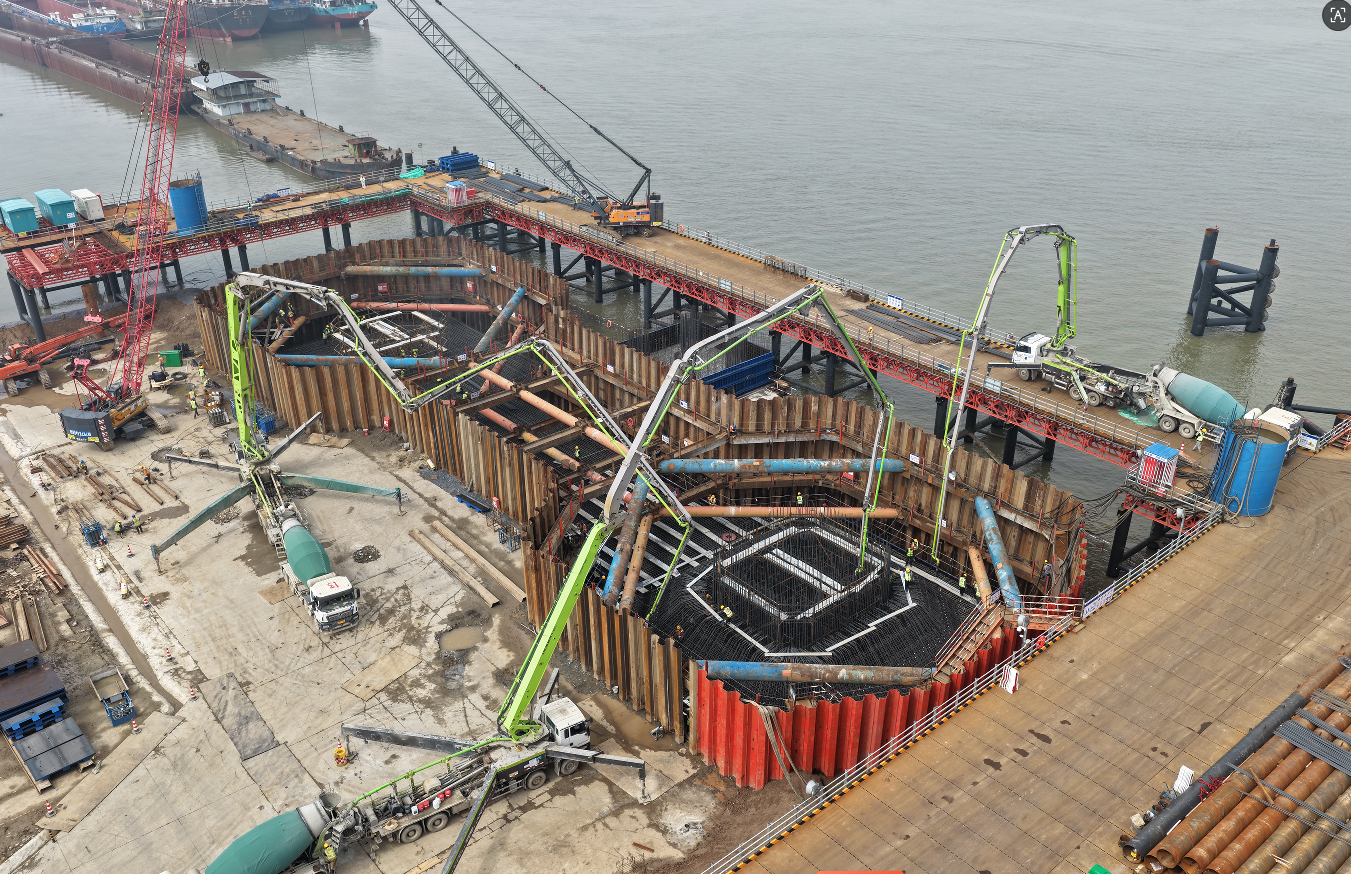 芜湖泰山路长江大桥主航道桥南主墩承台浇筑完成