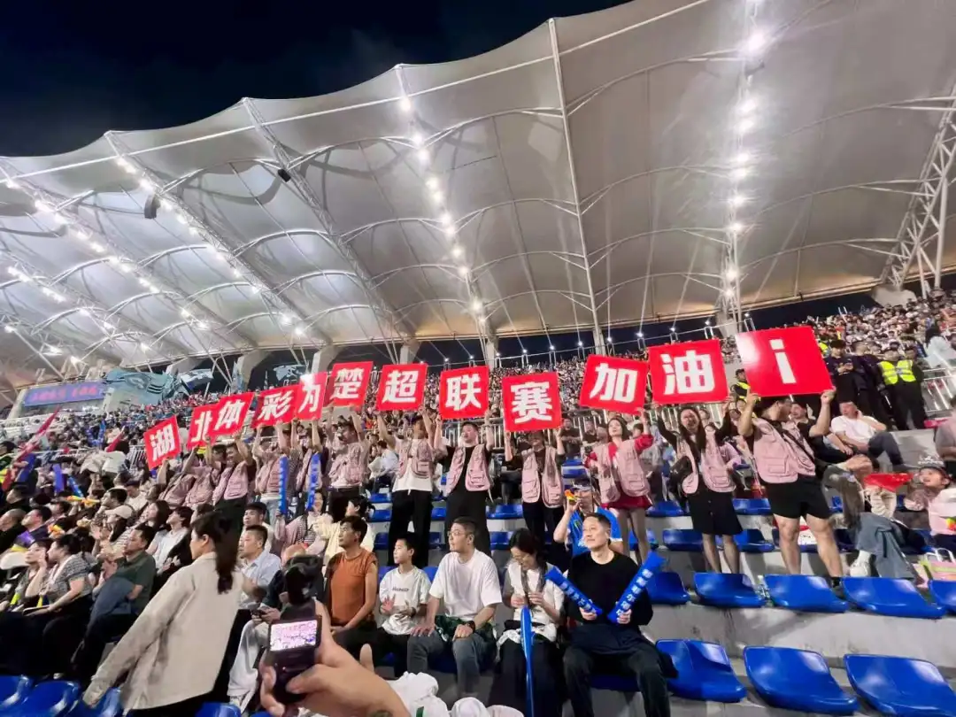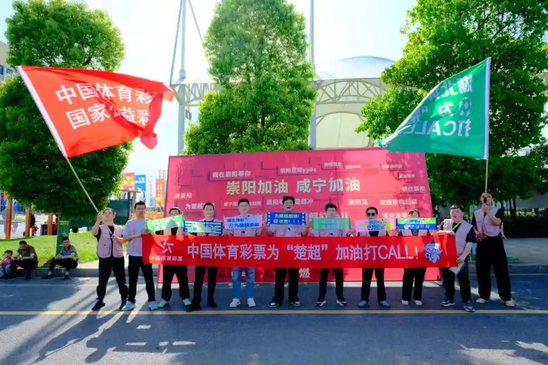 比赛当天,崇阳县体育场化身足球与公益交融的舞台。场上,球员们奋力拼抢、精妙配合,奉献出一场酣畅淋漓的对攻战;场下,湖北体彩的身影格外亮眼,由咸宁分中心工作人员、体彩代销者及热心购彩者共同组成的人员方阵坐镇观众席醒目位置。方阵成员手持大旗,配合大手举牌整齐挥舞,在绿茵场边形成强烈的视觉冲击。统一的旗帜与举牌展示,不仅为主队营造了浓厚助威氛围,也让“公益体彩 乐善人生”的品牌理念在赛事直播和现场观众心中留下深刻印记。