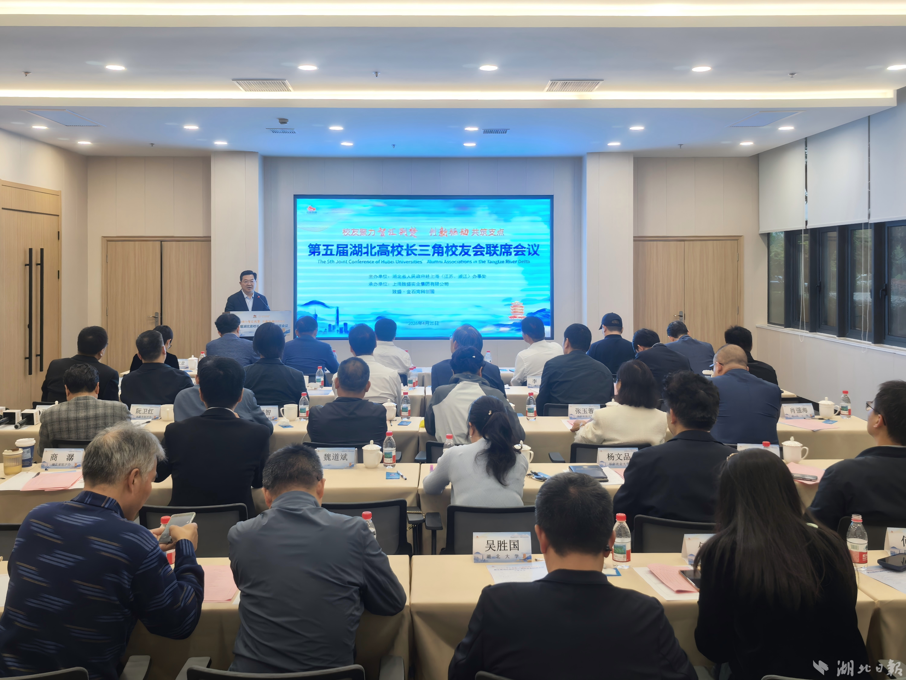 湖北日报讯(通讯员唐玉龙)4月20日下午,湖北省政府驻上海办事处在致盛·金石湾科创园举办第五届湖北高校上海校友会联席会议。26所湖北高校上海校友会的会长、执行会长及秘书长以及湖北办事机构负责人共计60余人参会。湖北省校友工作促进会会长、湖北大学校长刘建平出席会议。