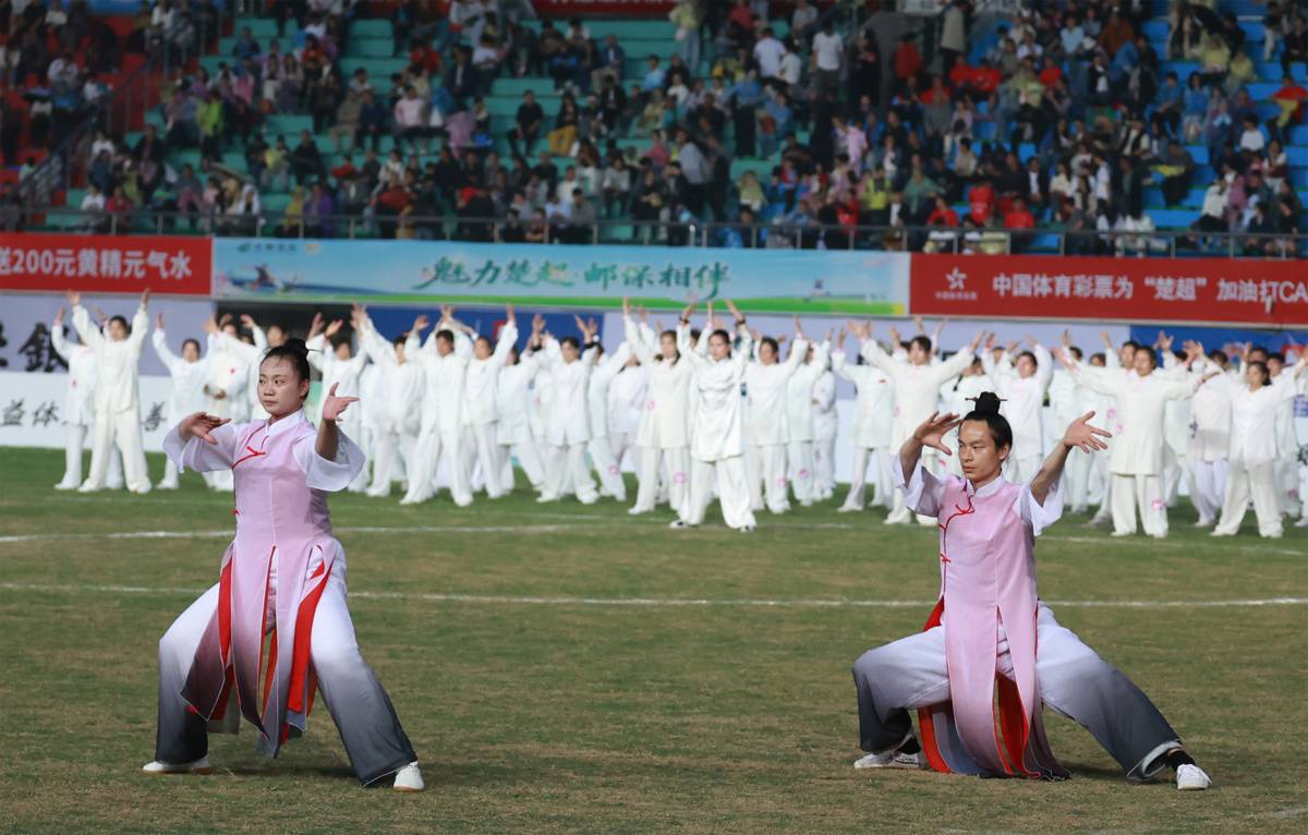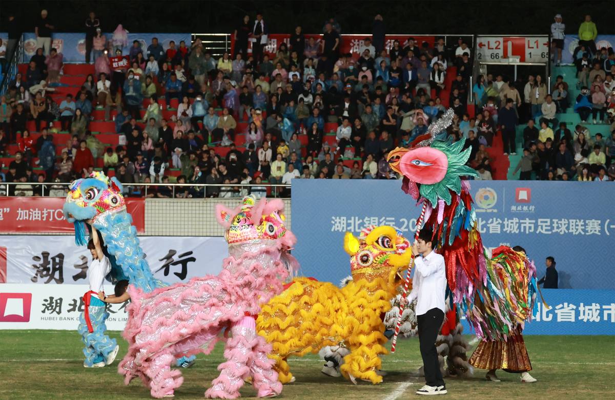 90多分钟的比赛高潮迭起,中场休息时的表演同样精彩。百人太极拳展演行云流水,凤舞狮腾灵动鲜活,威风锣鼓气势磅礴——这些融合十堰非遗元素的节目,让球迷纷纷赞叹:“这是一场属于球迷的欢乐盛会,既看到了竞技风采,也感受到了十堰文化魅力。”