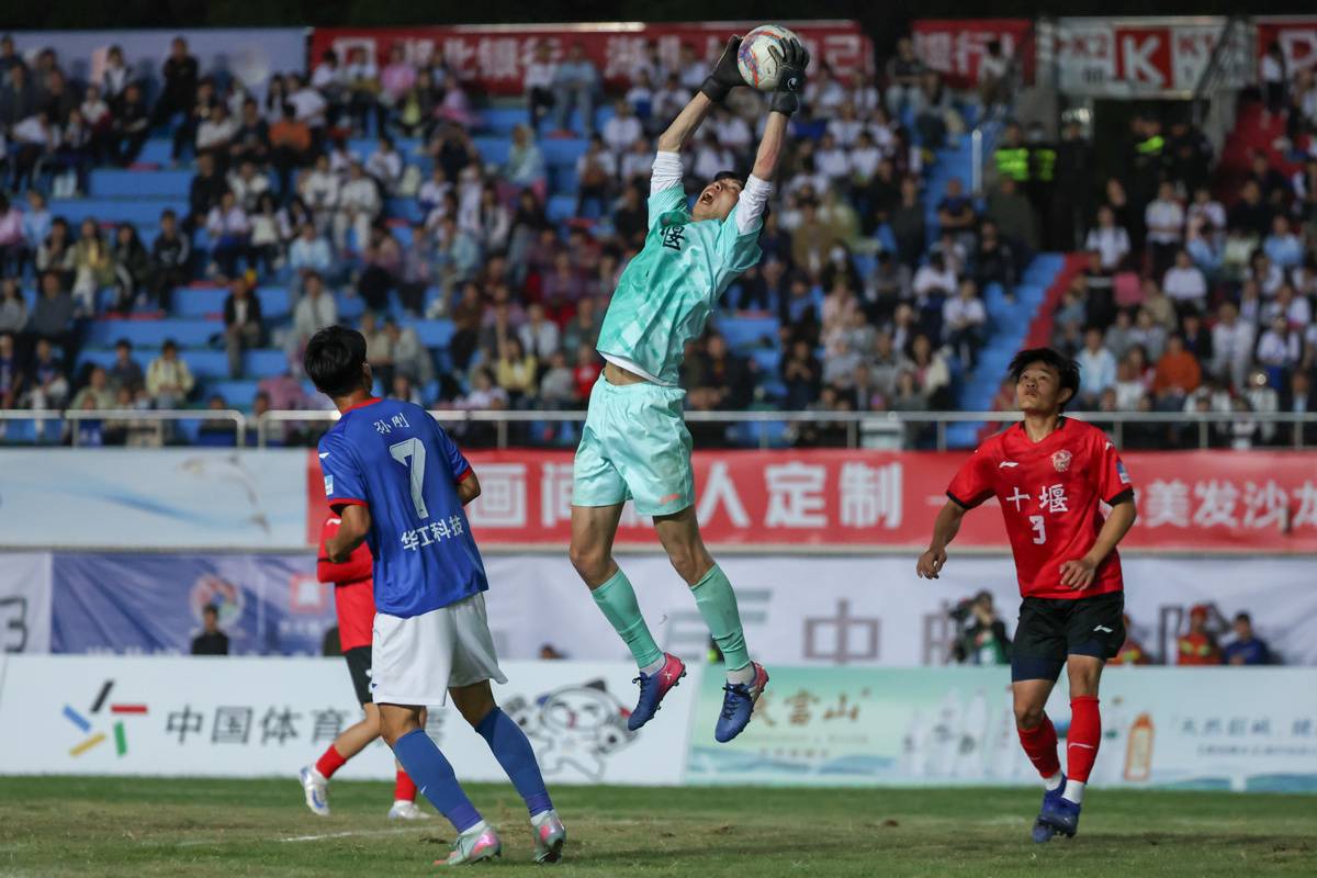 比赛伊始,“十堰武当”队凭借主场优势积极拼抢、主动进攻,边路突破与长传配合轮番出击;“武汉华工科技”队则沉着应对、见招拆招。第35分钟,“武汉华工科技”队35号球员姚子扬在门前混战中破门,斩获球队“楚超”首球。