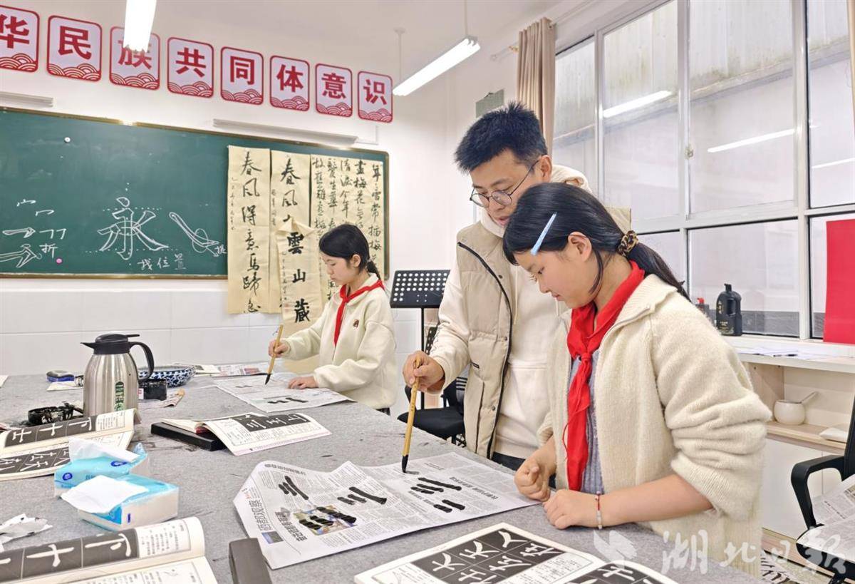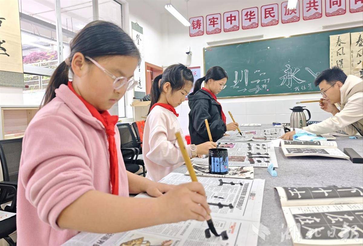 湖北日报讯(通讯员王恕林)4月21日,宣恩县高罗镇中心小学的书法社团课堂上,孩子们正专注地练习毛笔书法。同学们手握毛笔,在纸上认真临摹,一笔一划间尽显专注。