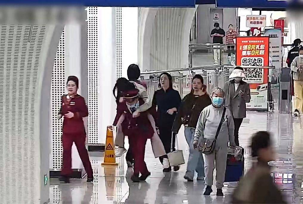 现场,值班站长聂珊珊询问乘客发病情况,工作人员李俐清理乘客伤口。得知乘客因赶时间没吃早餐、途中低血糖发作,聂姗姗安排工作人员端来热水。8时26分,经过10多分钟及时处置和悉心照料,乘客症状明显缓解。随后120急救人员抵达现场,多名工作人员将乘客推送至H口,安全搀扶上救护车。