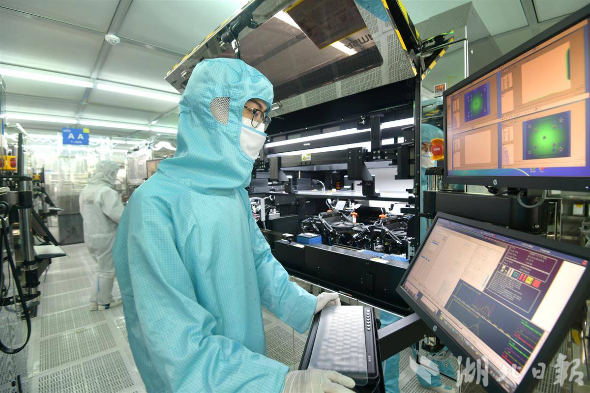 湖北三赢兴光电科技股份有限公司员工正在生产、检测、封装智能影像模组产品。