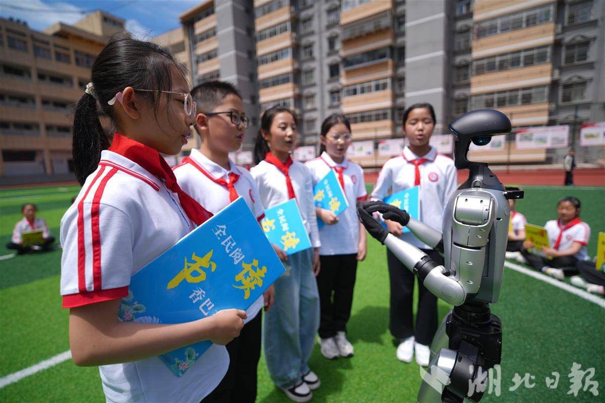 学生正与机器人一起阅读、一起对话。