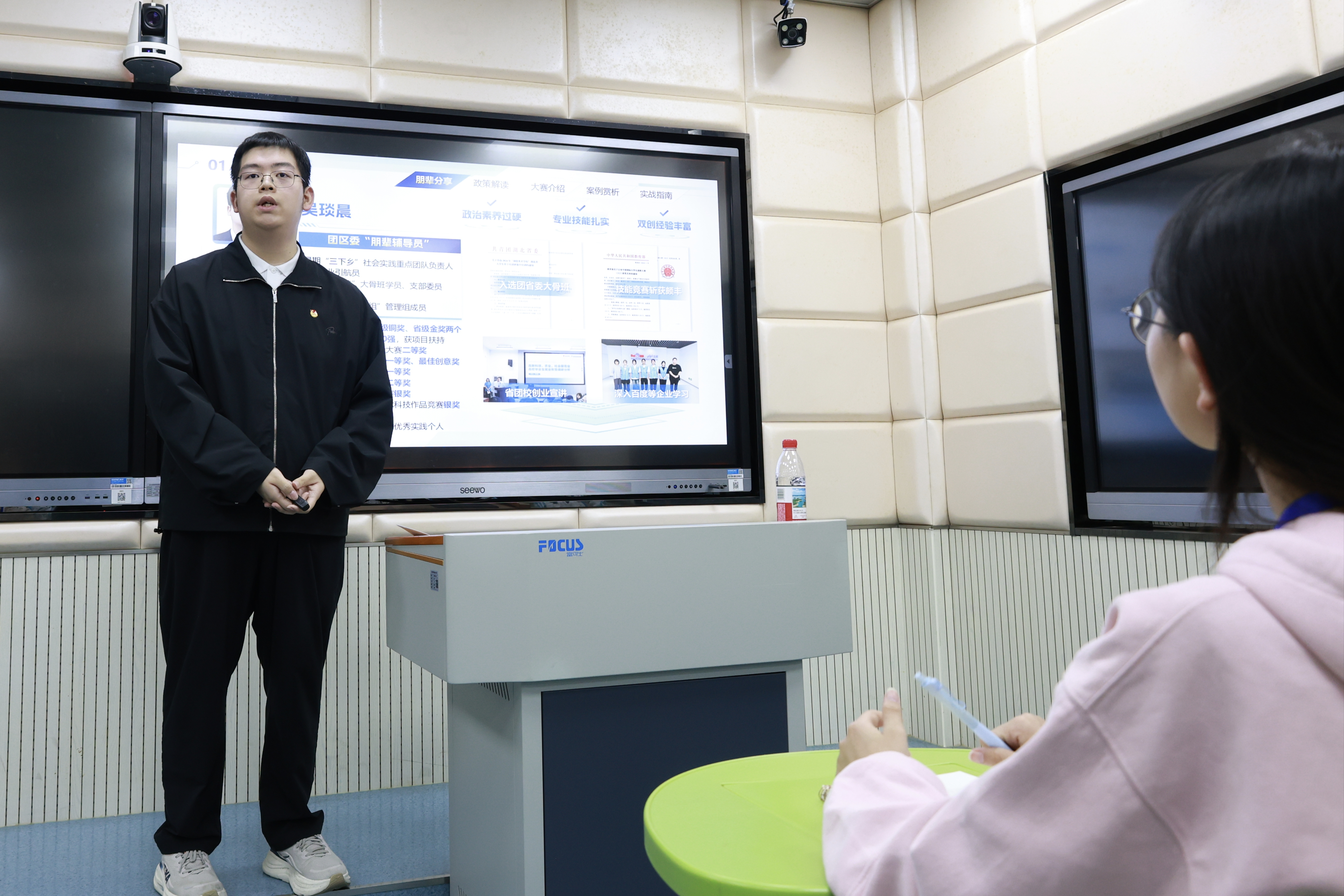 此次宣讲嘉宾为武昌工学院吴琰晨、谢崇昊两名优秀学生。二人深耕创新创业领域,多次斩获国家级、省级竞赛奖项,拥有丰富的项目运营与赛事实践经验。