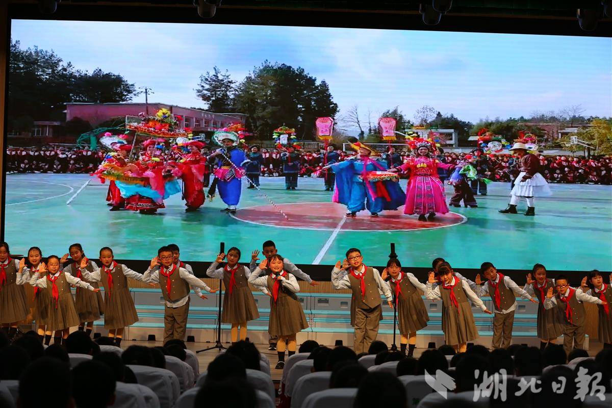 上午10点,主会场利川市第一民族实验小学的礼堂里,舞蹈《立春》拉开了活动序幕。与以往校园活动不同,现场多个机位将画面实时传输至各分会场。重庆石柱砫蒲小学的学生们通过大屏幕,与主会场同步朗诵《青青园中葵》中的篇章。