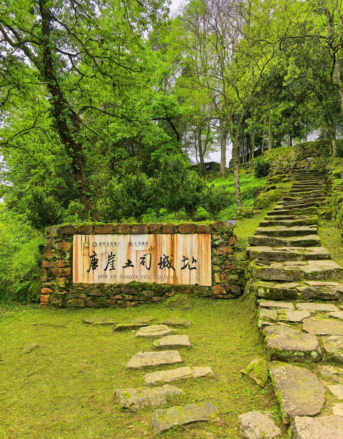 蒙蒙细雨中,新绿的草木与黛青色的砖瓦形成了鲜明对比,紫云英和野花在城墙根下沾雨怒放,为这座庄重的遗址增添了一抹灵动的生机。清明虽过,春色正浓,雨中的唐崖土司城址,正以其独有的静谧与深邃,吸引着少数撑着雨伞的游客前来聆听历史回响,感受这份独特的“中国式”浪漫。