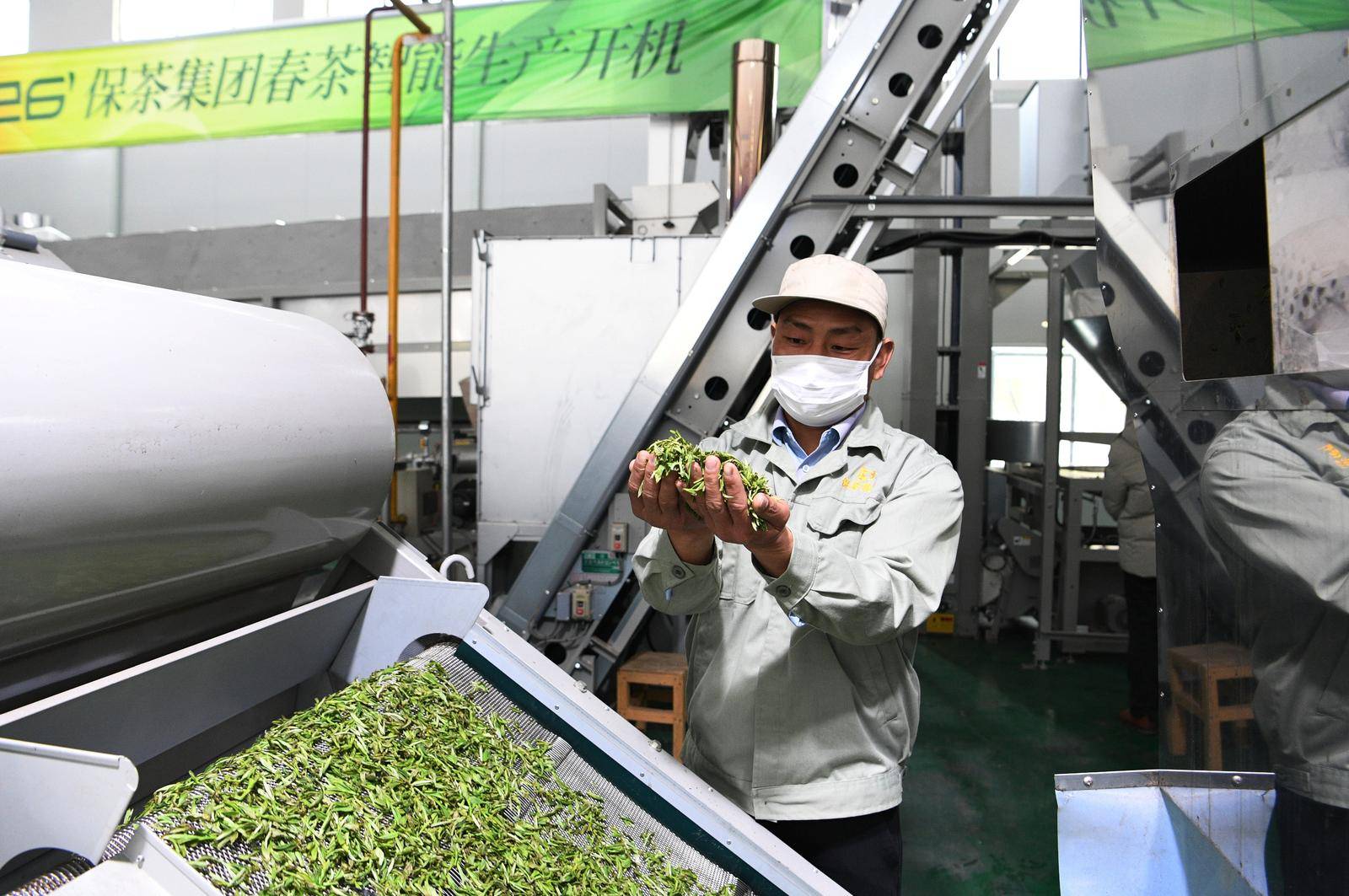 保康县茶业集团智能化生产线,工人在察看春茶品质。特约通讯员 陈泉霖 通讯员 邢忆星 肖婕 摄