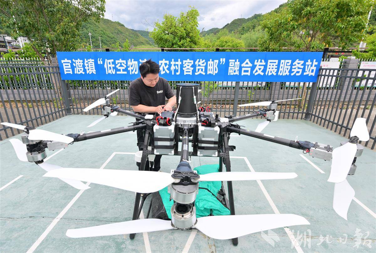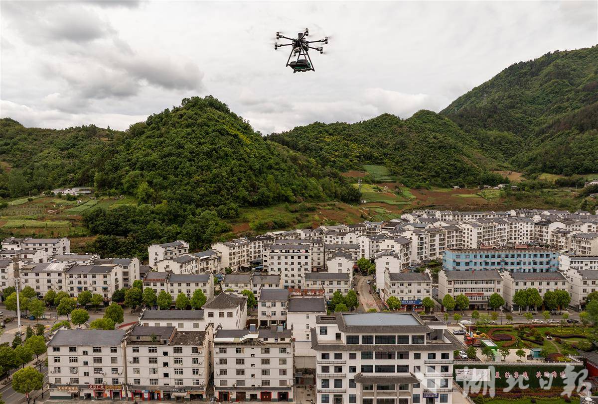 4月22日,竹山县官渡镇“低空物流+农村客货游”融合发展服务站用无人机将40公斤打包好的快递,翻山越岭,送达到12.5公里的大溪河村委会,用时仅为14分钟。无人机返程时,又将外销的土特产带回到官渡镇,与相应快递物流精准对接。