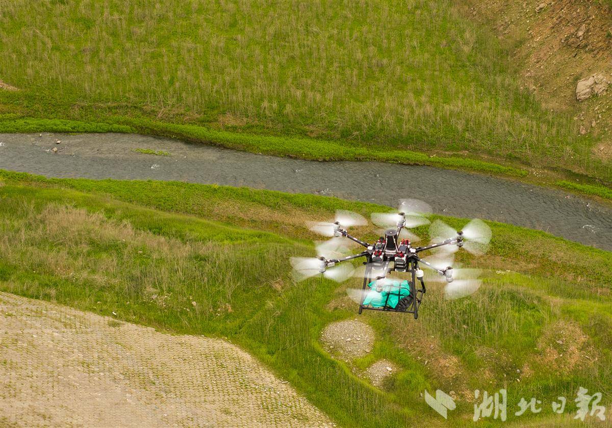 无人机将40公斤打包好的快递,翻山越岭,送达到12.5公里的大溪河村委会,用时仅为14分钟