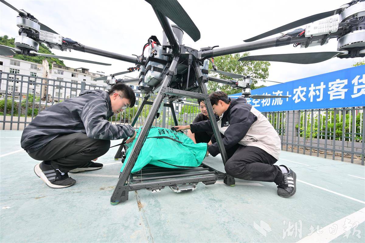 自去年以来,竹山县已在10个乡镇开通“县乡—村镇”快件低空物流、医疗物资低空运输线路,63个偏远村实现了无人机投运快递,运输时效提升70%,运件平均成本降低0.28元/件,助力优质农产品外销变现。(视界网 石濡华 邱亮 摄)
